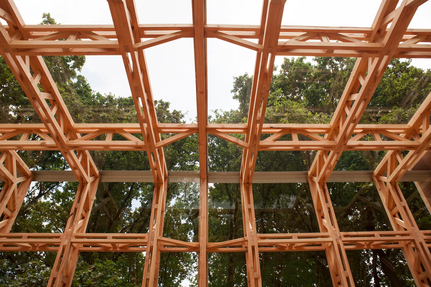 Toàn bộ dự án có được sự ổn định từ cấu trúc giàn gỗ truyền thống và được xây dựng trên 18 trụ bê tông cốt thép (150x20x50cm). Nếu không tính phần hiên thì nó có kích thước chỉ 6x4m khi khi chưa kéo ra, và chiều dài sẽ tăng lên được đến gần 12m nếu muốn.