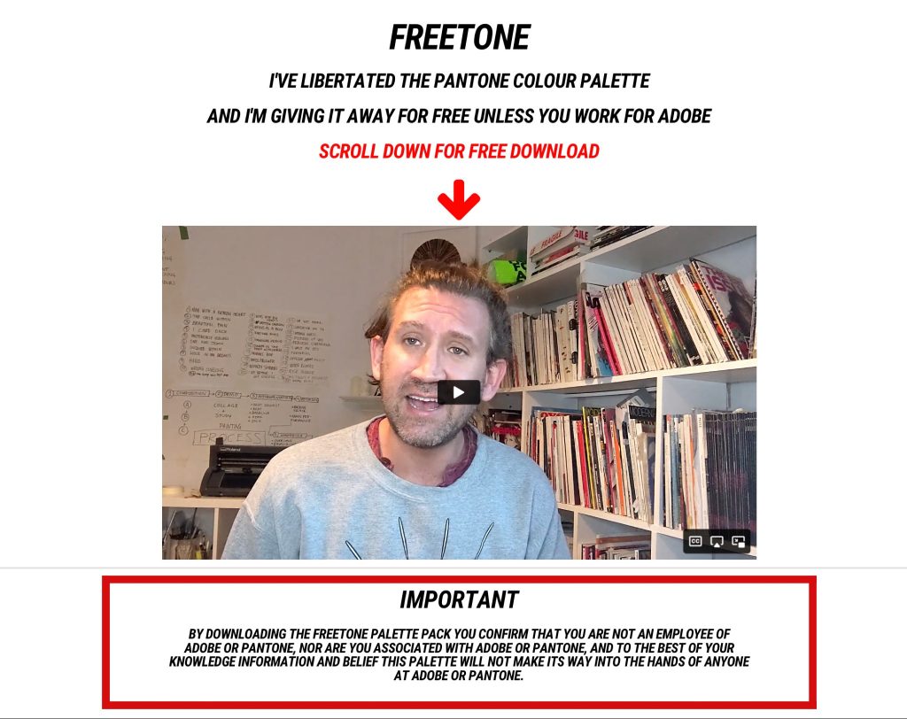 “Bất cứ ai cũng có thể tải và cài đặt plugin FREETONE để sử dụng cho công việc của họ. Vâng, bất cứ ai và tất cả mọi người, trừ những kẻ làm việc tại Adobe và PANTONE. Bọn họ có đủ rồi.” – Semple không quên nhắn nhủ.