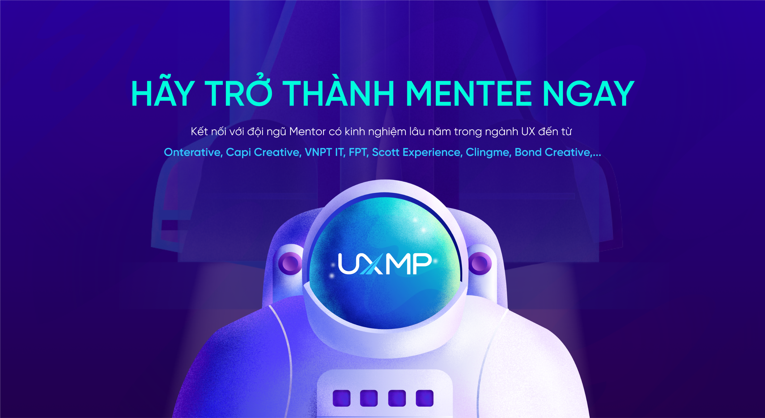 Với sự xuất hiện của lĩnh vực UX tại Việt Nam và sự phát triển không ngừng nghỉ của ngành này trên toàn cầu, giới trẻ Việt Nam đang đối mặt với nhiều thách thức và khó khăn khi tìm hướng đi đúng đắn trong sự nghiệp UX. Hiểu được điều đó, với hy vọng tạo ra một sân chơi và xây dựng một cộng đồng bền vững cho các bạn có đam mê, chung chí hướng về UX, UXMP (UX Mentorship Program) – Chương trình cố vấn UX đầu tiên tại Việt Nam ra đời. Đây là chuỗi hoạt động tư vấn và hỗ trợ hướng nghiệp UX bởi đội ngũ Mentor có kinh nghiệm lâu năm trong ngành, dành cho những đối tượng đang “mông lung” về công việc, có khao khát muốn tìm ra hướng đi đúng trong UX.