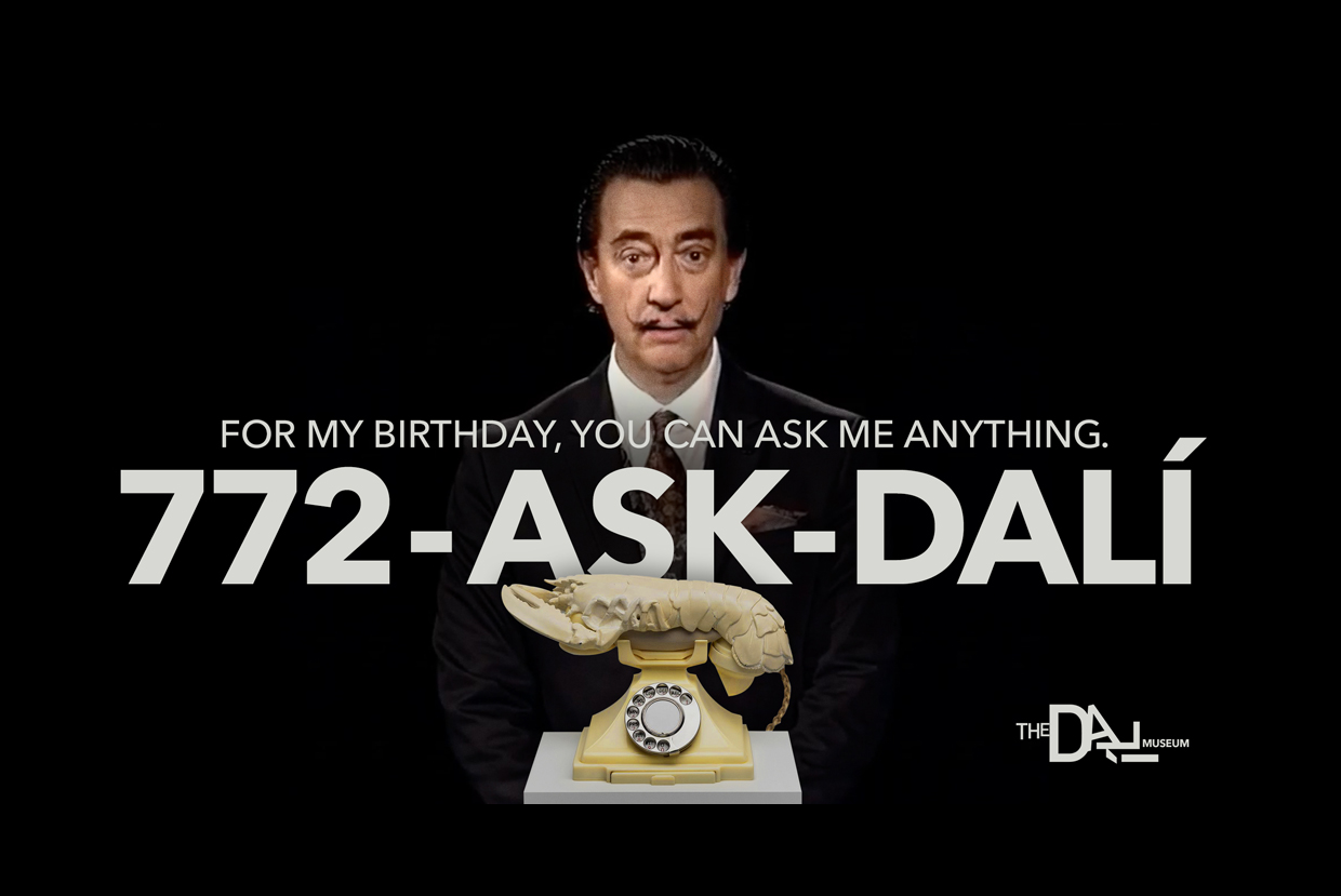 Số điện thoại 772-ASK-DALI sẽ hoạt động trên toàn nước Mỹ đến hết ngày 12 tháng 5. Người gọi có thể tham gia cuộc trò chuyện hai chiều với AI được huấn luyện dựa trên các tác phẩm viết, phỏng vấn và đặc điểm cá nhân của Dalí. Dù bạn muốn hỏi về thói quen chăm sóc ria mép của ông hay chỉ đơn giản là chúc mừng sinh nhật, giọng nói ở đầu dây bên kia được thiết kế để phản hồi như chính Dalí.