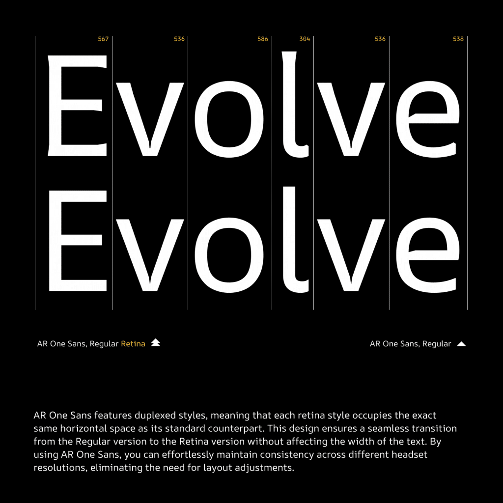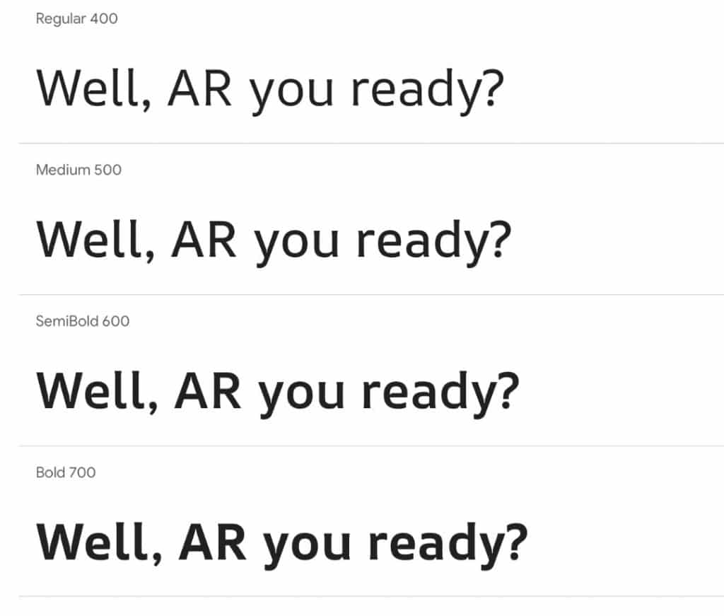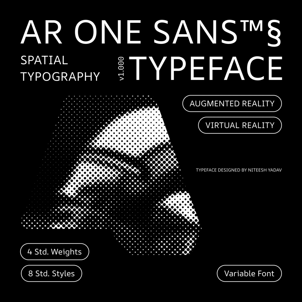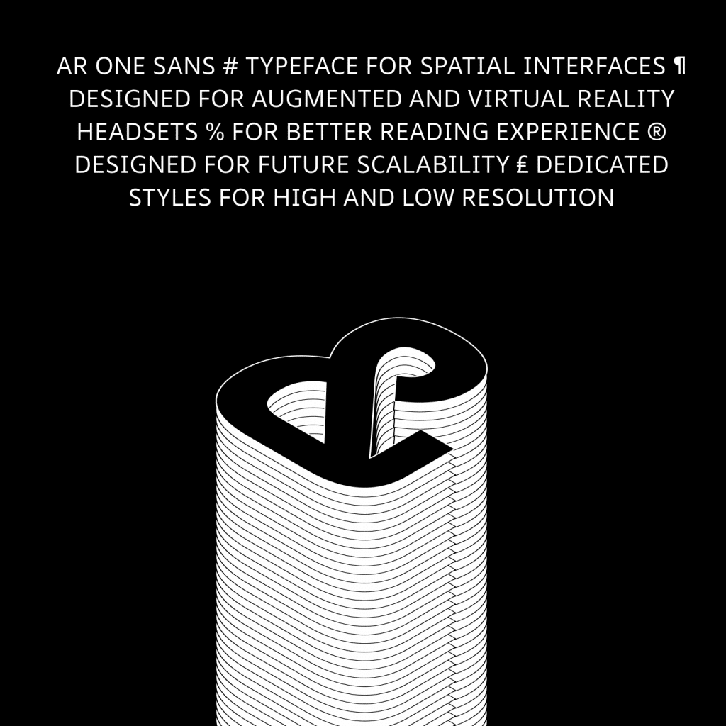 Có tên là AR One Sans, kiểu chữ này được tạo ra bởi designer đa ngành Niteesh Yadav và được thiết kế để phục vụ cho các yêu cầu độc đáo trong môi trường AR. Kiểu chữ này có độ tương phản thấp, khoảng cách rộng rãi và hình dáng chữ mạnh mẽ, nhằm đảm bảo người dùng có thể đọc tốt ngay cả trên những background hỗn độn.