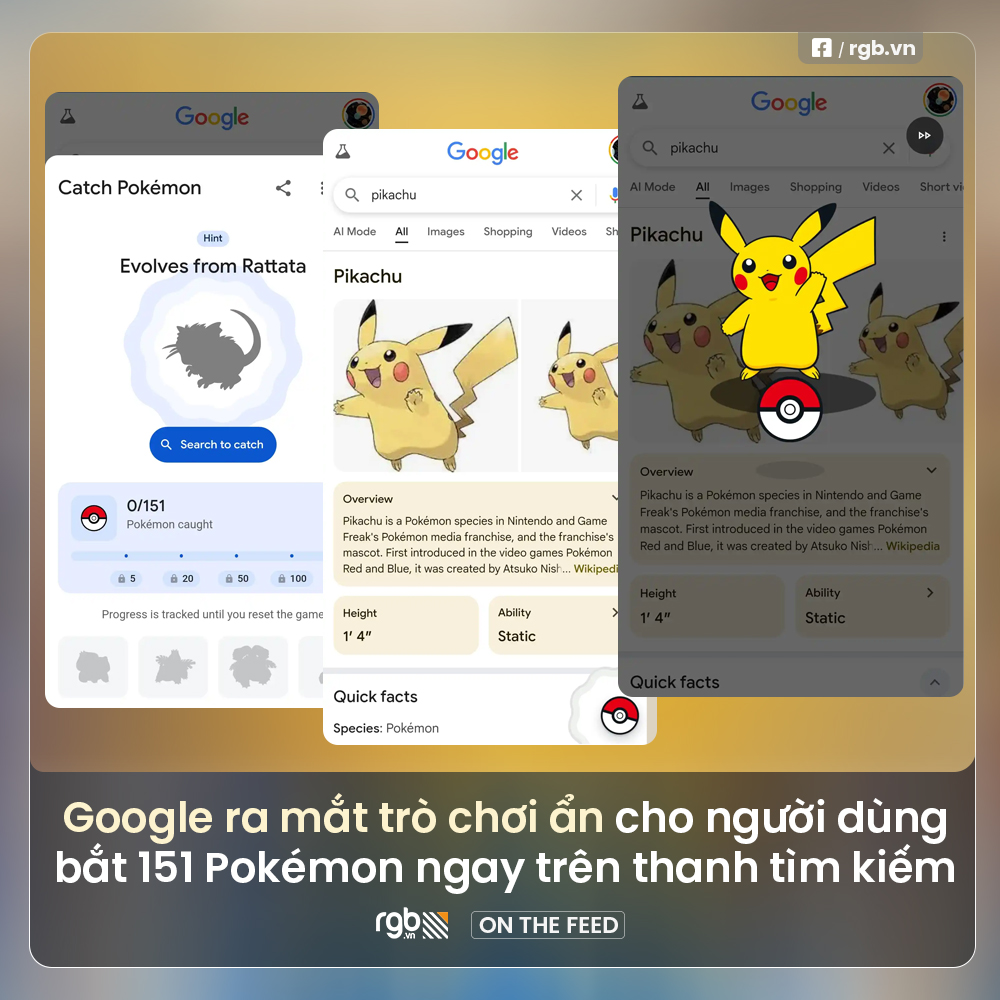 Google vừa ra mắt một trò chơi ẩn mới, cho phép người dùng thu thập 151 Pokémon từ thế hệ đầu tiên trực tiếp trên trình duyệt di động. Trò chơi chỉ khả dụng trên trình duyệt di động và yêu cầu đăng nhập vào tài khoản Google để lưu tiến trình.