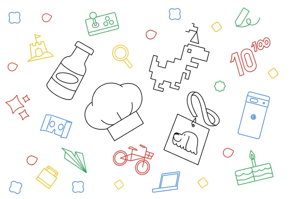 Cả hai đều mô tả các đồ vật theo chủ đề Google như Chrome Dino, 1998 (năm thành lập công ty), Chromebook, điện thoại Pixel, số googol (10 mũ 100) mà cái tên Google được dựa theo, và chân dung của những nhà sáng lập Sergey Brin và Larry Page.