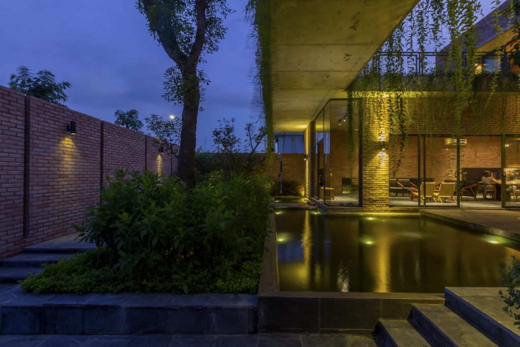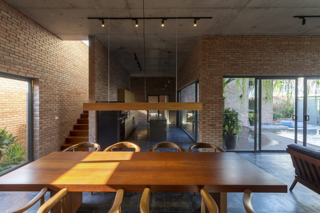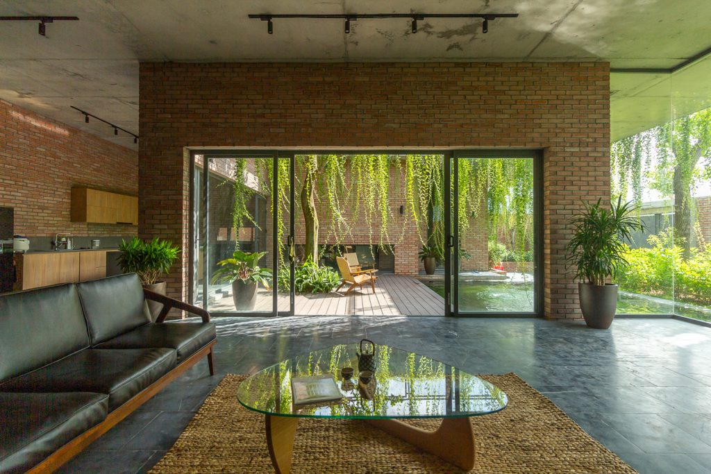 Vật liệu chính trong ngôi nhà là gạch đỏ và bê tông trần tạo cảm giác mộc mạc, gần gũi, đậm chất con người. Vật liệu cũng là một yếu tố quan trọng để tạo nên không gian kiến trúc, tạo cảm xúc với con người và tôn lên vẻ đẹp của thiên nhiên, không gian kiến trúc. Thông qua dự án này, KTS muốn sử dụng những phương pháp đơn giản, những vật liệu phổ biến của địa phương để tạo nên một không gian sống đầy cảm xúc, gần gũi với con người và với thiên nhiên.