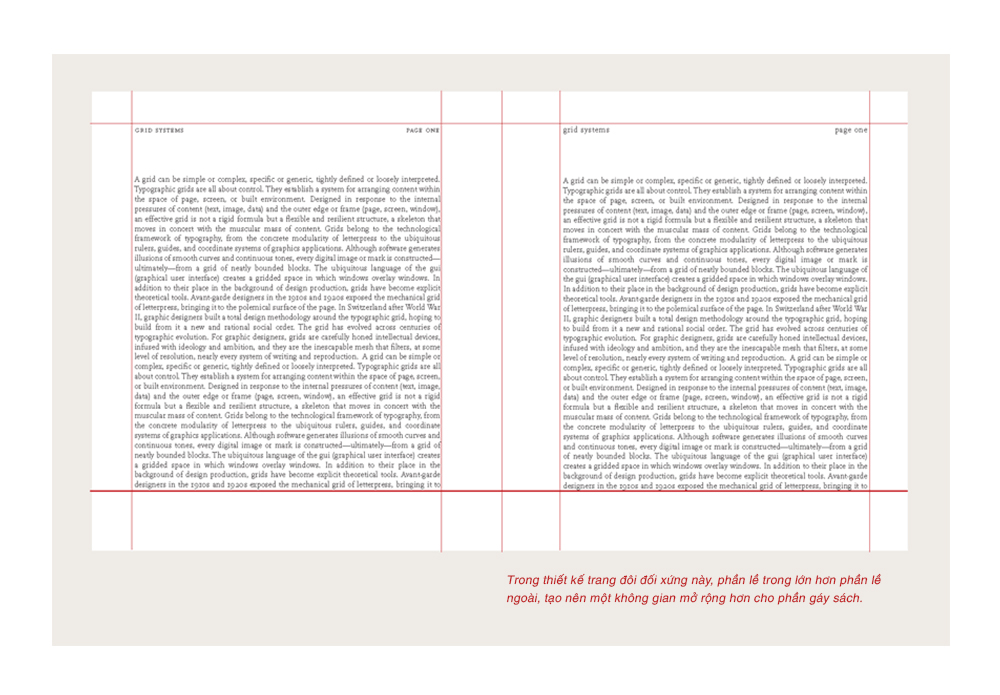 Sách và tạp chí thường được thiết kế theo trang đôi. Một trang đôi, thay vì là một trang đơn, là một đơn vị của thiết kế. Lề trái và phải trở thành lề trong và lề ngoài. Phần mềm thiết kế layout sẽ đồng nhất lề trong sẽ giống nhau cho cả hai trang bên trái và bên phải, tạo ra một sự hài hòa, đối xứng cho trên một mặt giấy. Bạn hoàn toàn tự do, dĩ nhiên, chơi theo luật của bạn và tạo nên một thiết kế trang bất đối xứng.