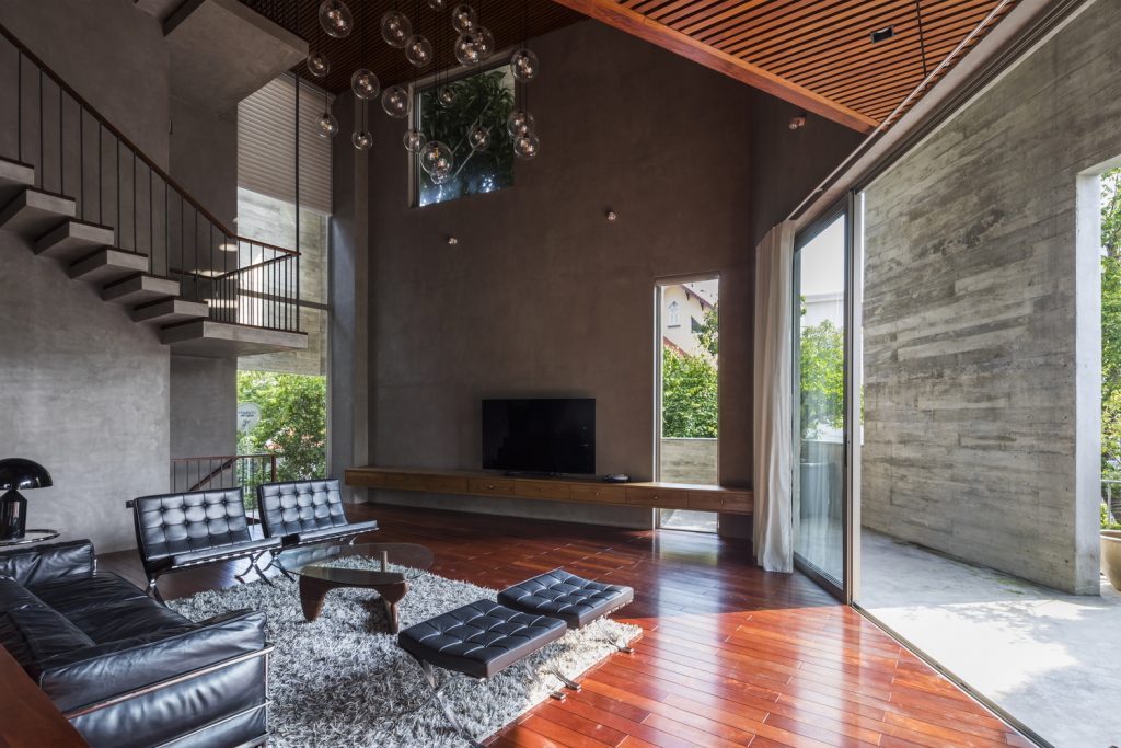 Mọi không gian bán ngoại thất trong ngôi nhà đều được kết nối với cầu thang xoắn ốc chính. Có một chuỗi không gian từ bên ngoài vào bên trong, từ mặt đất đến mái nhà, và thông qua không gian bán ngoại thất với một cửa sổ lớn và nhiều cây xanh để cảm nhận cảnh quan thiên nhiên phong phú và cảnh quan thành phố từ các góc độ khác nhau.
