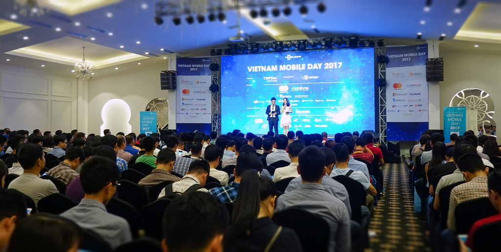 Sáng ngày 27/05, sự kiện Vietnam Mobile Day 2017 tiếp tục hành trình lan tỏa sứ mệnh kết nối và chia sẻ giá trị kiến thức đến cộng đồng Hà Nội. Hơn 4000 nhà phát triển, chuyên gia truyền thông, đại diện các Tech startup… đã đắm chìm trong không gian Công nghệ – Mobile đa sắc màu suốt 8 tiếng đồng hồ với gần 50 chuyên đề và diễn giả cùng hàng chục gian hàng triễn lãm kết hợp nhiều hoạt động thú vị thu hút sự quan tâm của người tham dự.