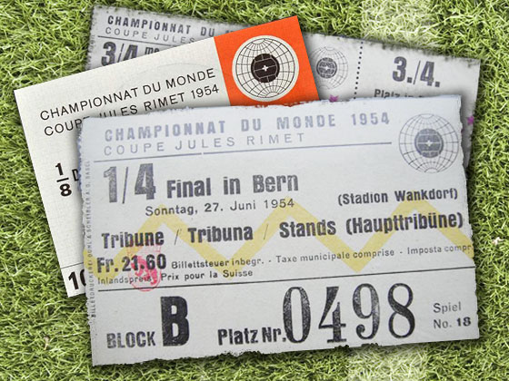 Sau 12 năm ngưng hoạt động, World Cup đã trở lại với tấm vé mang hơi hướng năm 1938 sử dụng hệ thống 3 tông màu cơ bản. Đây là tấm vé sơ khai đầu tiên từ ngày trở lại của World Cup.