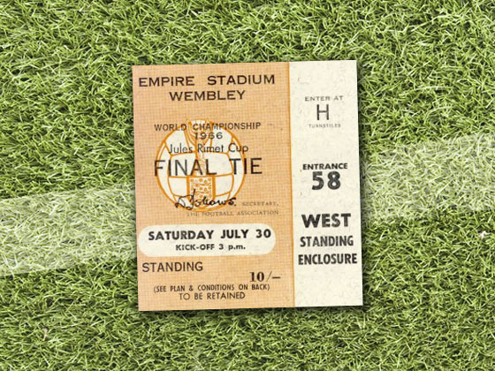 Đây là tấm vé chung kết World Cup đầu tiên trên thế giới, bao gồm một kiểu chữ phiến và chỉ có hai màu được phối hợp với nhau, đây được xem là một tiêu chuẩn thiết kế khá khôn ngoan. Đối với một nhà sưu tập, một tấm vé này trị giá đến £1,000.