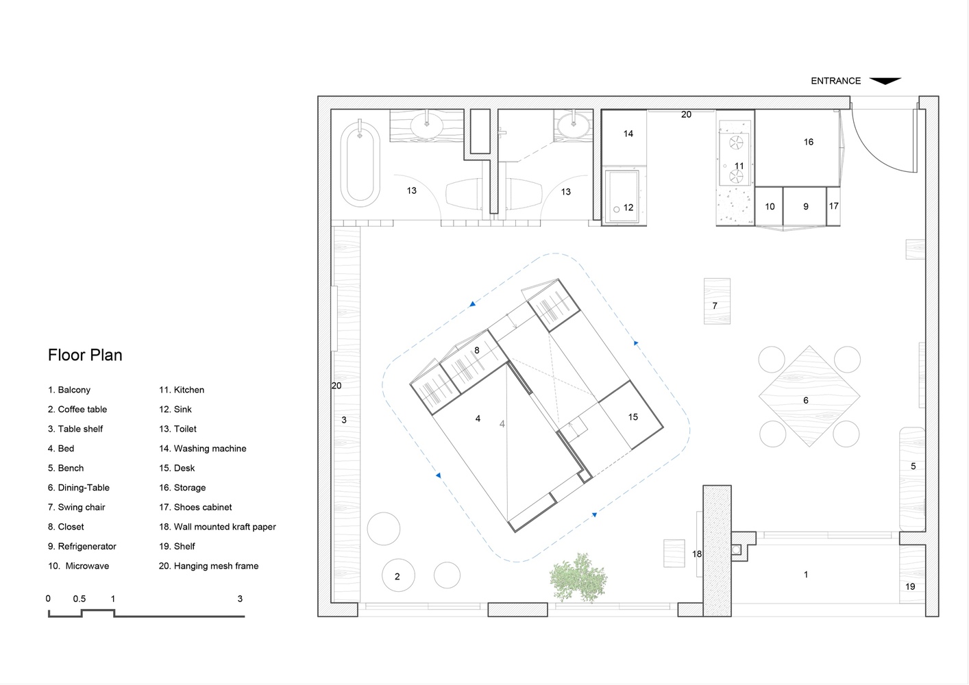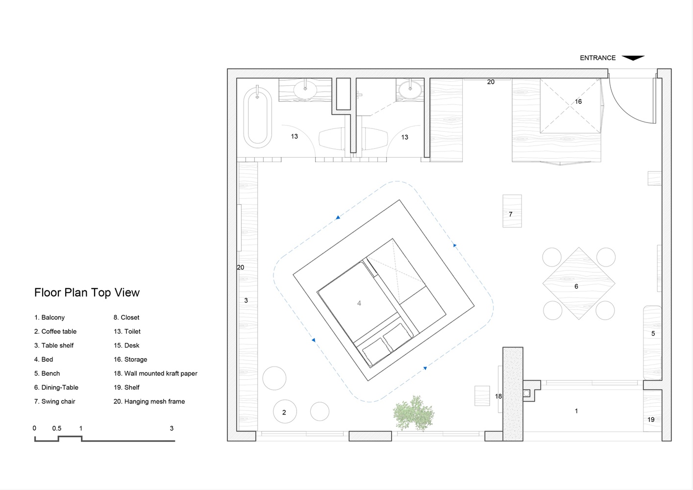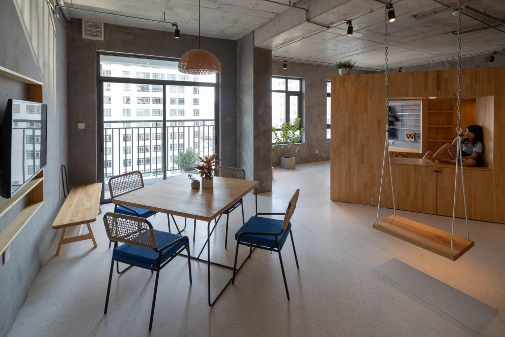 Công trình là một căn hộ chưa hoàn thiện và gần như trống rỗng. Để giảm thiểu việc xây dựng, thiết kế giữ nguyên hiện trạng của khu vực như ban đầu. Phần trần bê tông cũng được giữ nguyên để tăng tối đa chiều cao cho không gian.