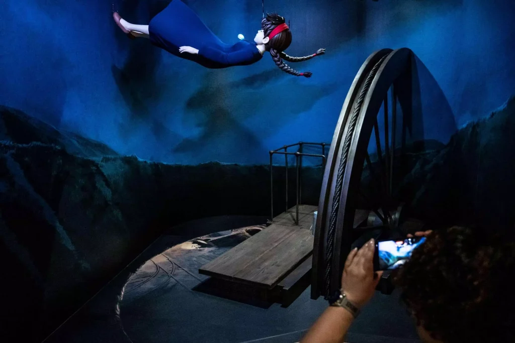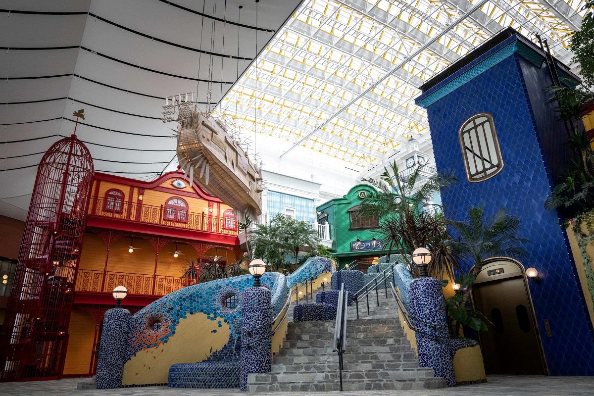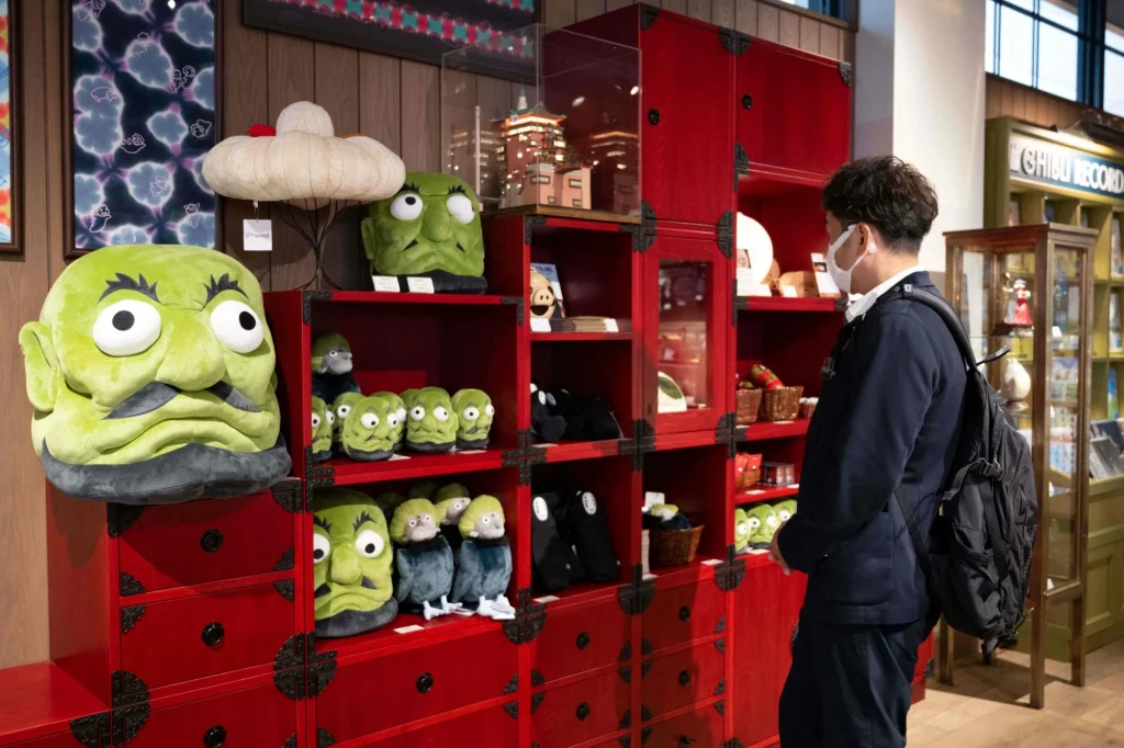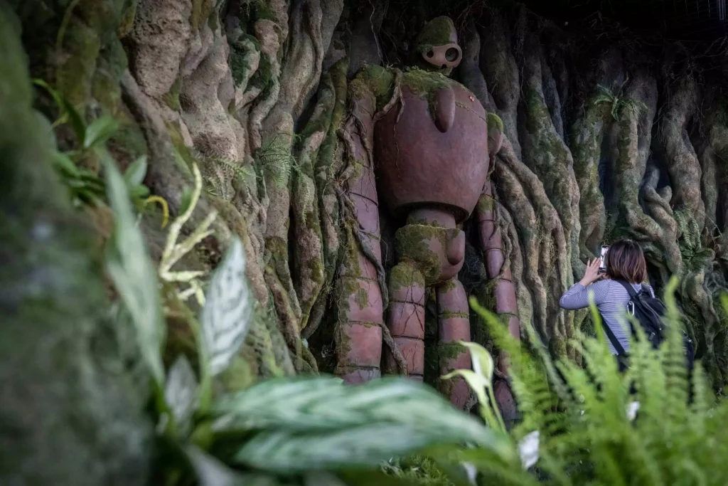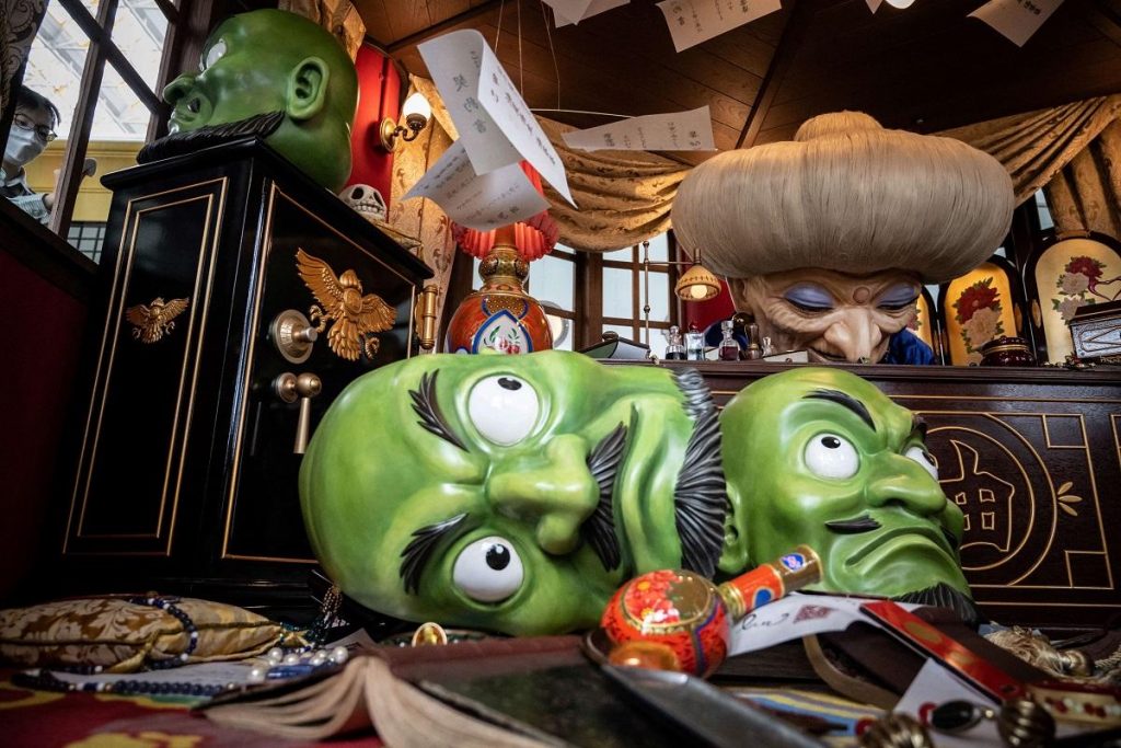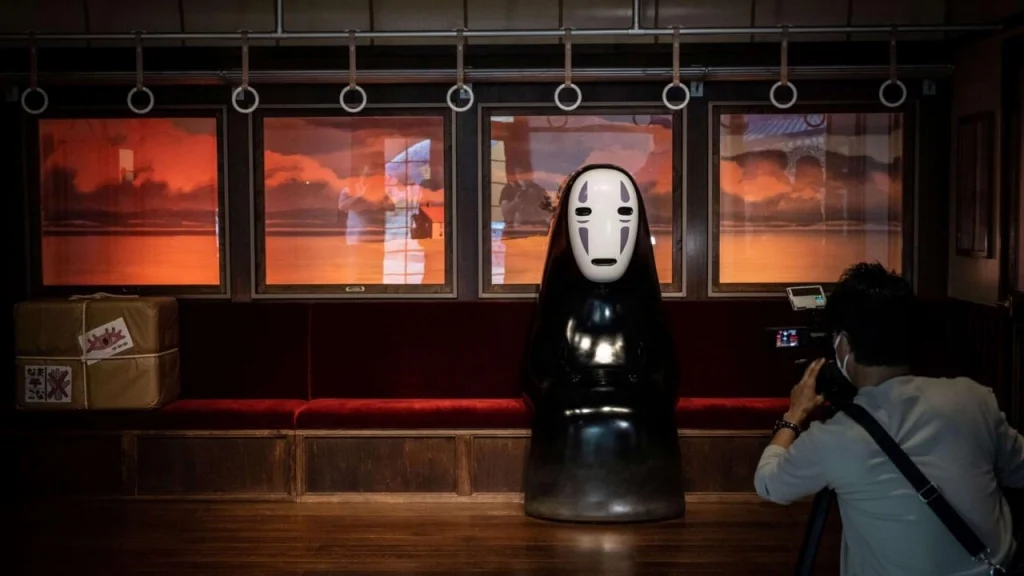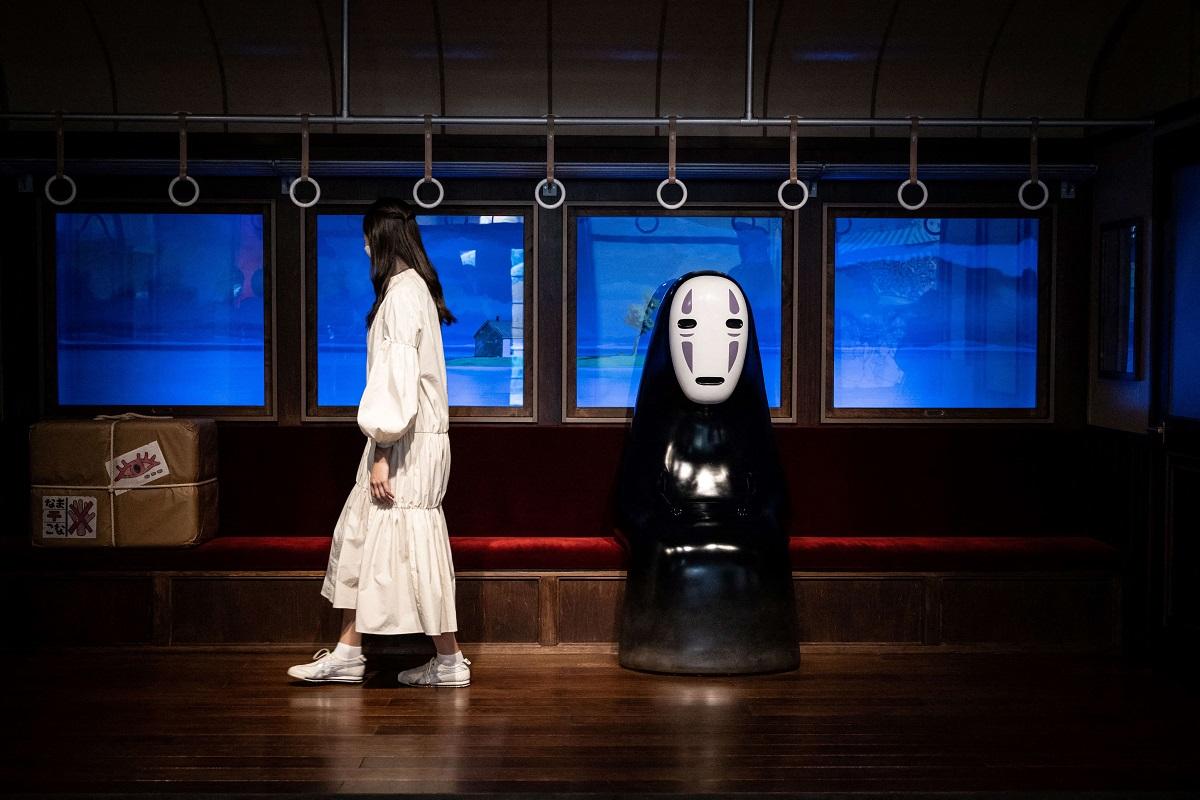 Du khách có thể tản bộ dọc theo một con hẻm được thiết kế giống cảnh mở đầu của Spirited Away, hoặc ngồi trên ghế tàu phủ nhung đỏ bên cạnh Vô Diện.