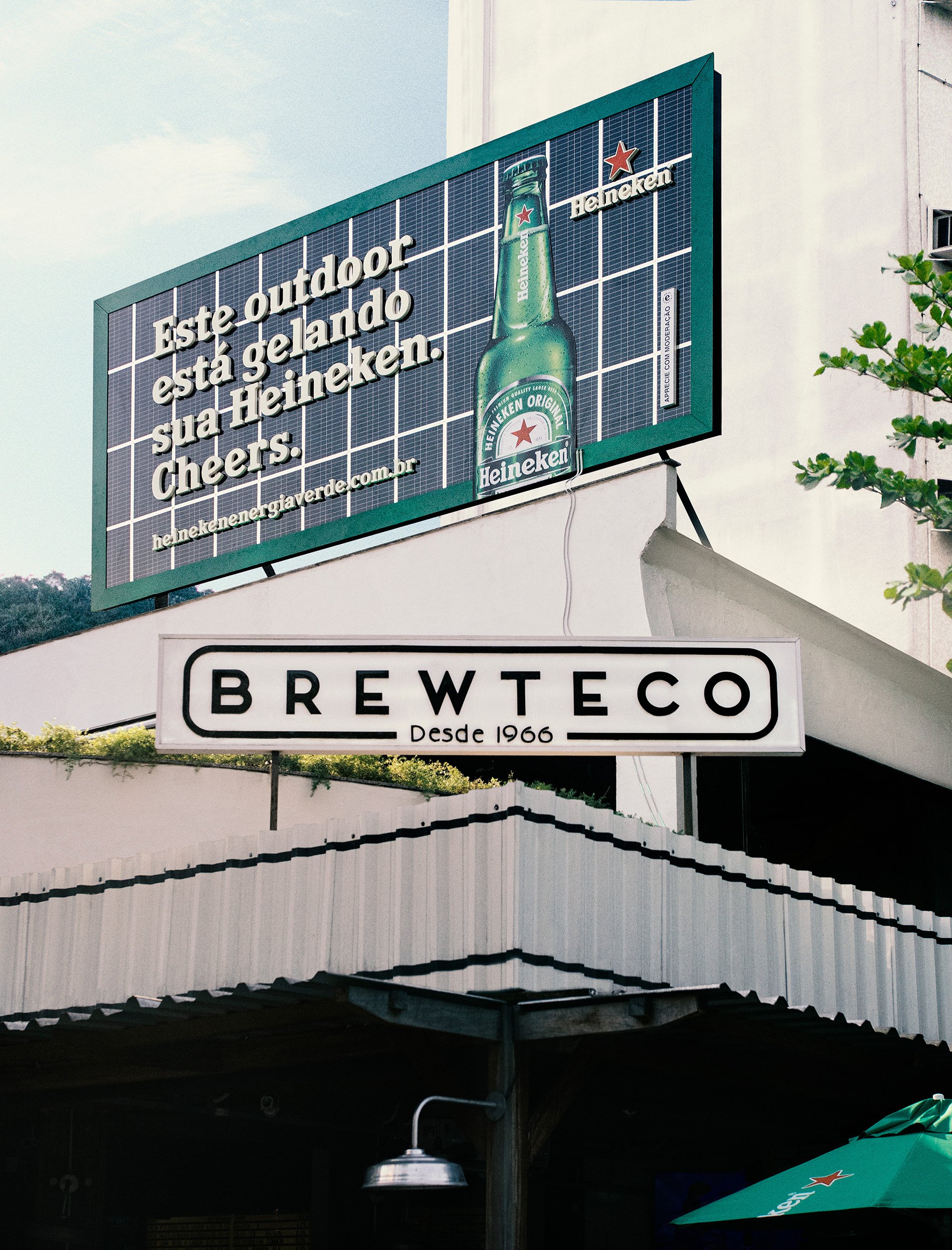 Theo LBB Online, thương hiệu đã hợp tác với công ty sáng tạo Le Pub thuộc Publicis và cho gắn các tấm pin mặt trời trên biển quảng cáo của mình tại Brewteco, một quán bar nổi tiếng ở Rio de Janeiro, với hy vọng nâng cao nhận thức về cam kết sử dụng các nguồn năng lượng tái tạo của Heineken.