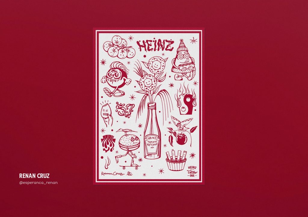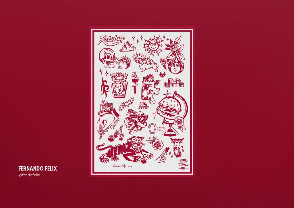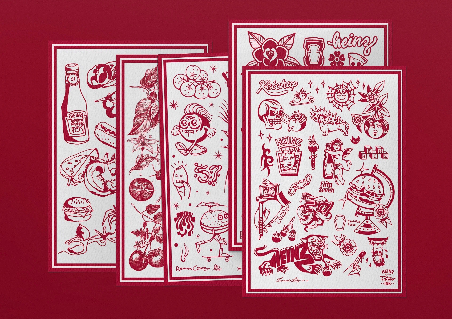 Để giúp màu mực mới này đến với công chúng dễ dàng hơn, Heinz cũng hợp tác với năm nghệ sĩ xăm hình người Brazil để thiết kế 57 khuôn xăm thể hiện phong cách nghệ thuật của từng nghệ sĩ và sự đa dạng của văn hóa nước này.