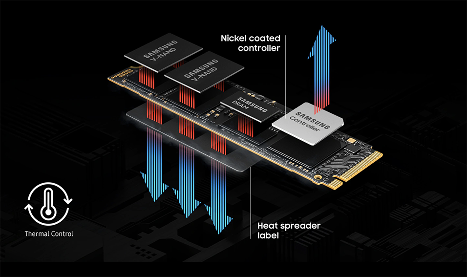 Tuy nhiên, yếu tố quan trọng hàng đầu với trải nghiệm game phải kể đến khả năng kiểm soát nhiệt và tiết kiệm điện năng vượt trội của sản phẩm này. Samsung SSD 9100 PRO sử dụng cấu trúc nguồn bộ điều khiển 5nm hiện đại, cung cấp thêm một lớp kiểm soát nhiệt với mức tiêu thụ năng lượng ít hơn, từ đó tạo ra một ổ cứng mát hơn, bền hơn cho người dùng. Công nghệ nói trên giúp tăng hiệu quả sử dụng điện năng của Samsung SSD 9100 PRO tới 49% so với thế hệ tiền nhiệm. Giờ đây game thủ có thể “cày” game trong thời gian dài mà không lo tình trạng máy quá nhiệt hay tiêu tốn điện năng như khi sử dụng các loại ổ cứng thông thường.