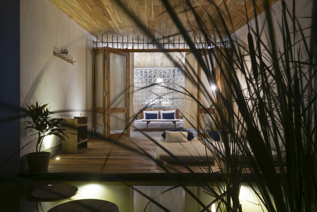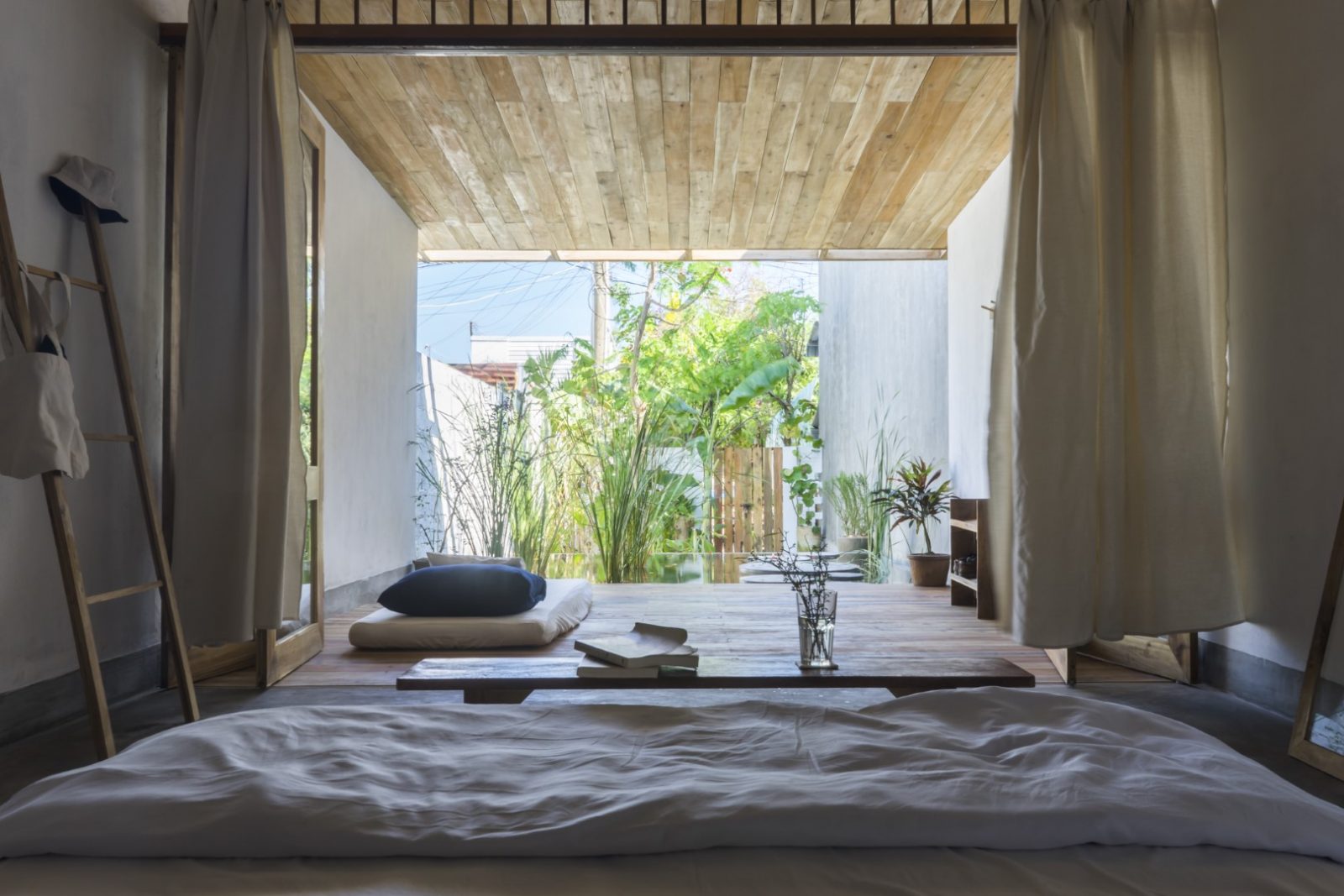 Các không gian vừa có tính kết nối thống nhất vừa có sự phân chia ước lệ thông qua các lớp ngăn nhẹ liên tiếp nhau như cửa, rèm, vách gạch kính, cây xanh…