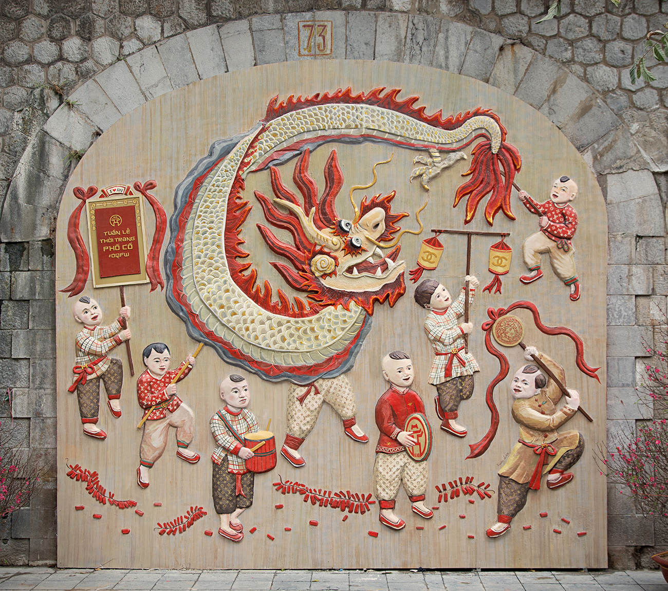 Một kỷ niệm khác mình cũng nhớ rất rõ có lẽ là khi thực hiện tác phẩm phù điêu “Tuần Lễ Thời Trang Phố Cổ”, mình khá lo lắng không biết liệu công chúng sẽ đón nhận ra sao về sự kết hợp giữa những yếu tố thời trang với một tác phẩm tranh dân gian Hàng Trống ngay giữa một không gian công cộng trong lòng phố cổ Hà Nội