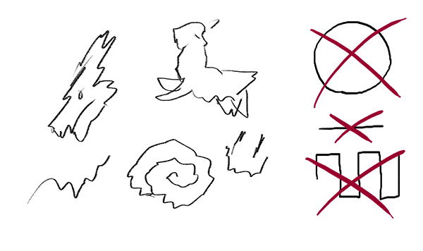 Làm sao để mất đi chỉ một ít sự chuẩn xác đó? Hãy bắt đầu với bài tập đơn giản: vẽ vài hình bằng cách run nhẹ tay, như bạn đang bị căng thẳng vậy. Thực hành nó đến khi tay bạn cảm thấy thả lỏng lại.