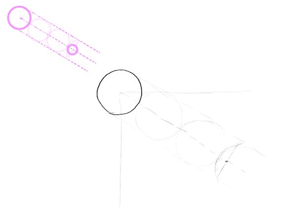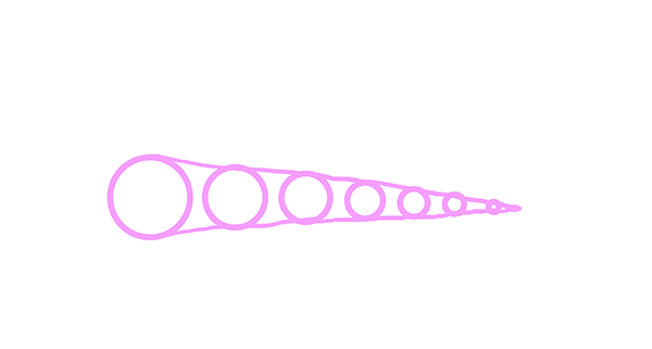 Hãy bắt đầu với các hình tròn thẳng hàng, mỗi hình sẽ nhỏ hơn so với hình trước đó của nó. Kết thúc hàng các hình tròn với một điểm.
