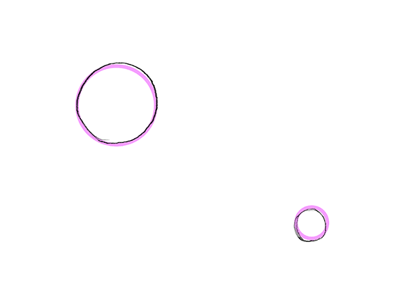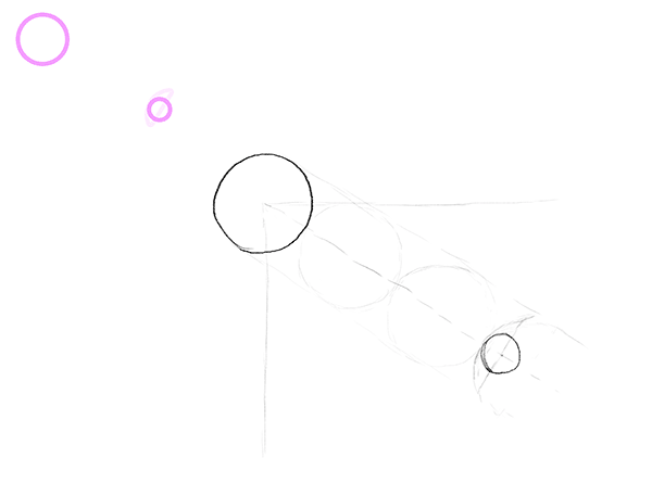 Bây giờ chúng ta cần thiết lập khoảng cách. Cần bao nhiêu hình tròn đặt giữa hai hình tròn trong hình gốc? Áp dụng mối quan hệ này vào hình của bạn. Trong lần đầu tiên, tốt nhất là in hình gốc ra và thực sự vẽ ra những hình tròn, sau đó bạn có thể giả vờ như mình đang vẽ chúng (giữ đầu bút đừng chạm vào giấy hoặc màn hình và hình dung ra các hình tròn trong tâm trí bạn).