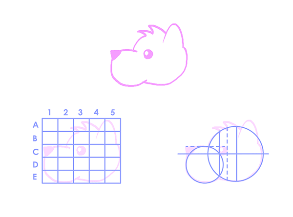 Thông tin ma trận là một bản mẫu để tạo ra những thứ lập lại giống nhau Việc nhớ chúng thật khó, và chúng chỉ hữu dụng trong vài tình huống. Thông tin Vector có thể được mở rộng. Nghĩa là khi điều kiện thay đổi (tư thế, kích thước và phong cách khác biệt), các thành phần điều chỉnh theo chúng, bởi vì chúng bị ràng buộc bởi tỷ lệ, không phải vị trí. Đây là một ví dụ:Thông tin ma trận về đầu chó: