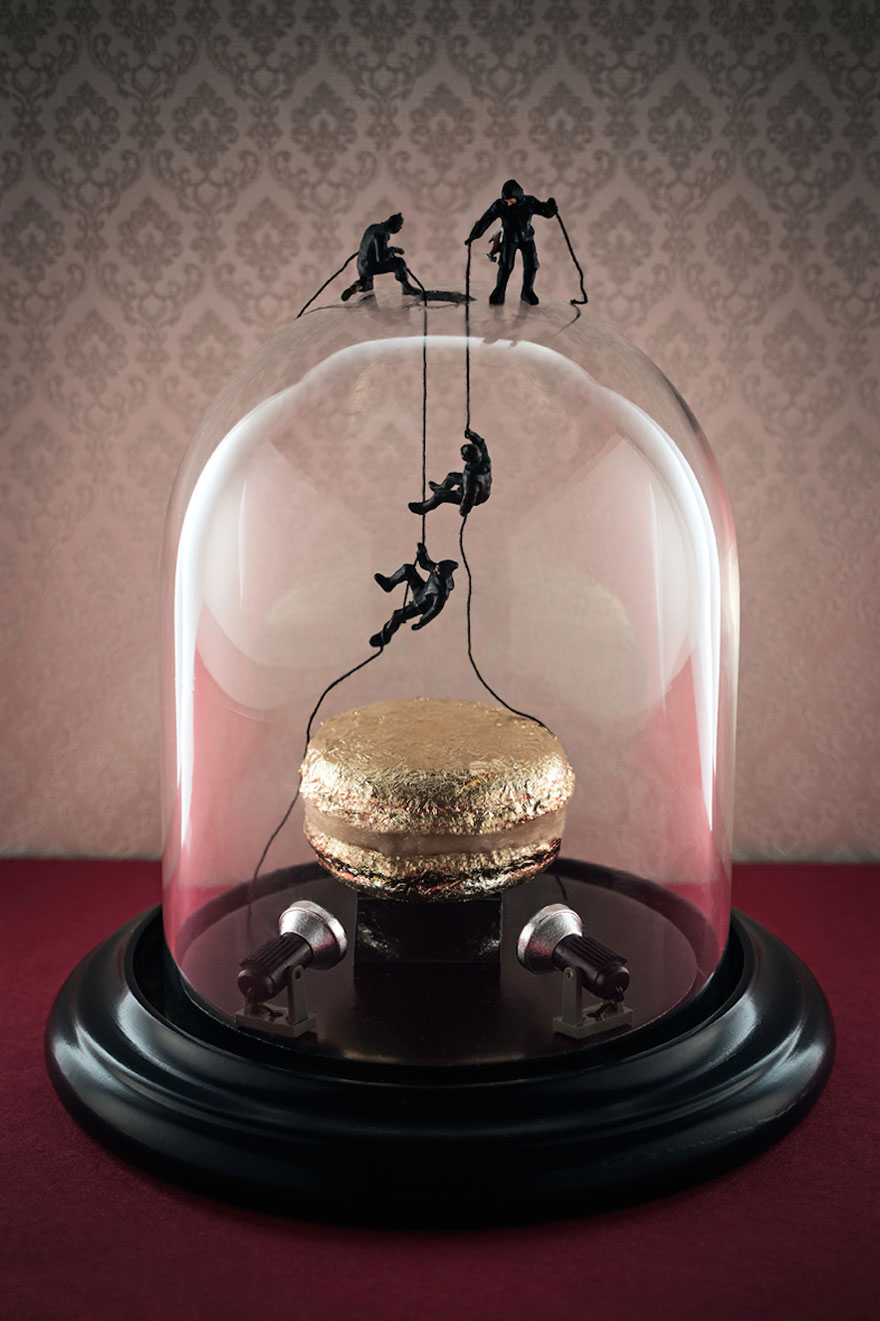 Nhiều người cho rằng tôi sử dụng Photoshop để tạo nên những bức ảnh này. Thực tế, tất cả những chiếc bánh là sản phẩm thật và tôi đã phải tìm những hình nhân, sơn lại hoặc chỉnh màu để khiến chúng hợp với bối cảnh. Tôi còn tạo ra những hiệu ứng đặc biệt với khói và ánh sáng.