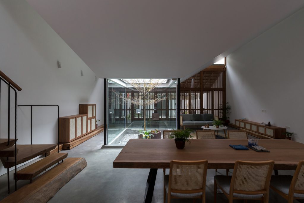 Hàng hiên, ngưỡng cửa, sân trong, mái nhà, tỷ lệ là những “thành phần” quý giá được chọn lọc từ truyền thống để hoàn toàn phù hợp với không gian đương đại của Hopper House. Nhóm KTS không sao chép các “thành phần” đó cho Hopper House, họ sử dụng chúng làm đầu vào để phân tích, sắp xếp và tạo ra thiết kế không gian và chức năng của ngôi nhà.