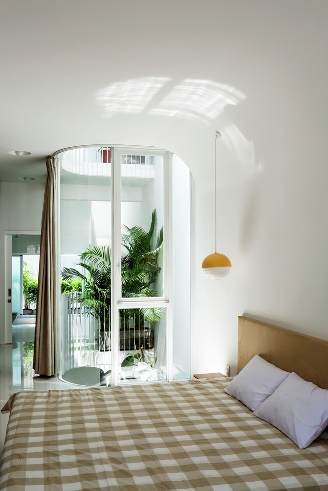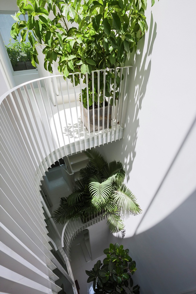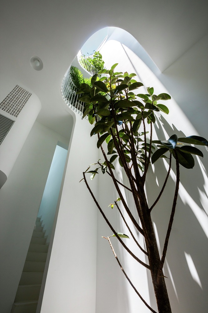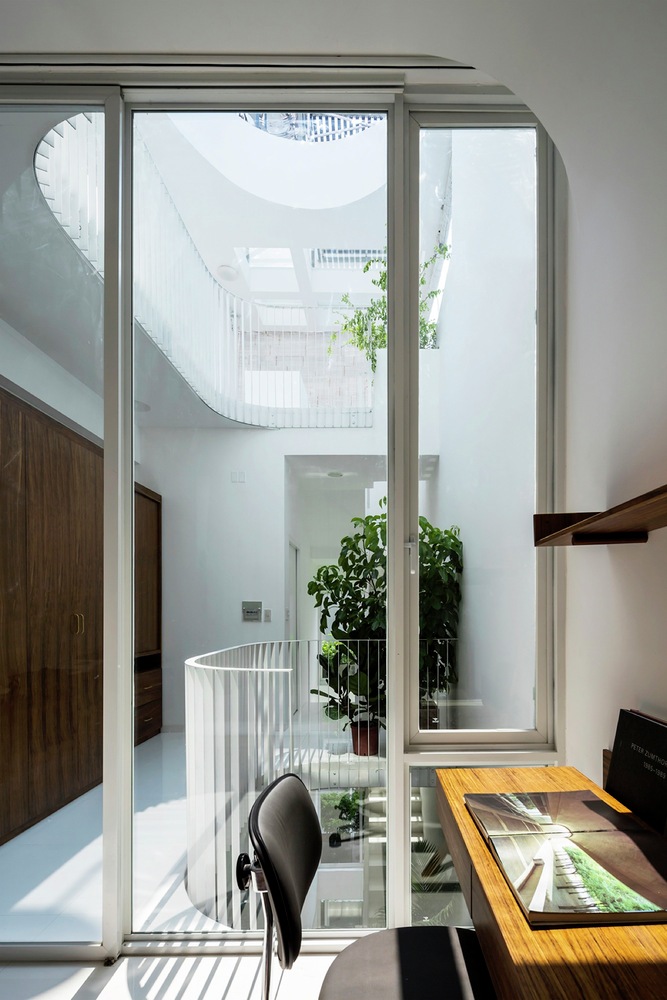 Giếng sáng mở rộng theo chiều dọc giúp tối đa hóa chất lượng và điều kiện không gian mong muốn, đồng thời khơi gợi cảm giác cởi mở và kết nối với thiên nhiên khi mở ra bầu trời.