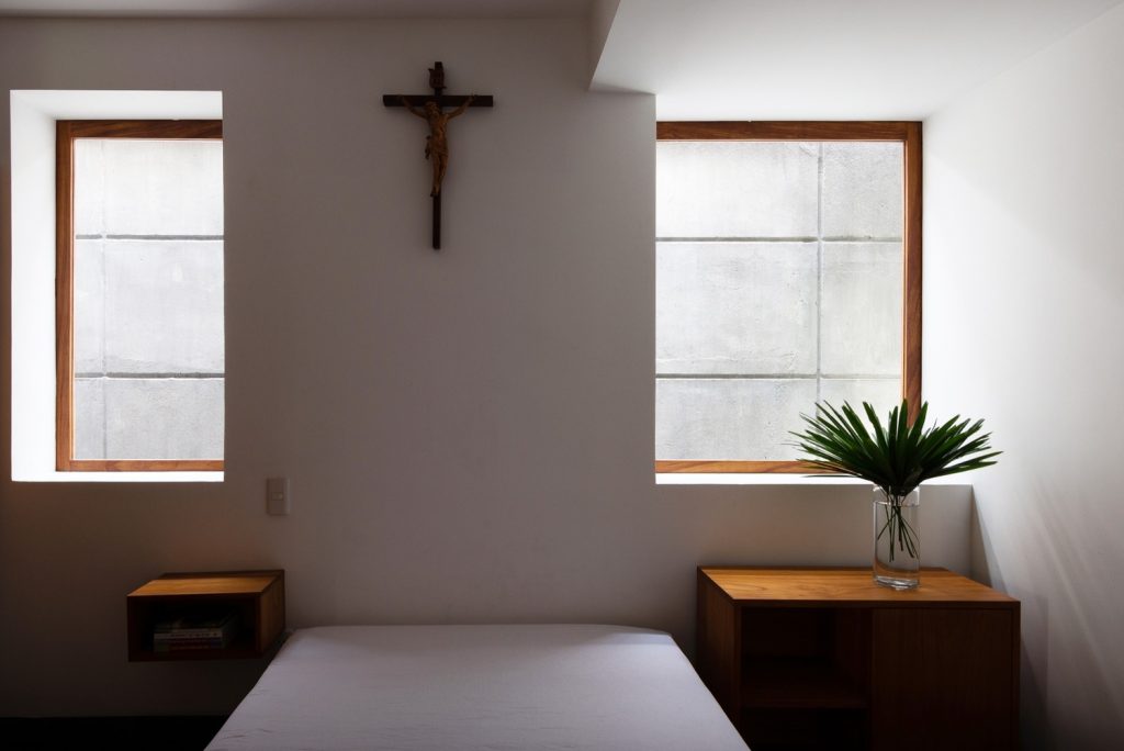 Ngôi nhà với sự kết hợp khiêm tốn của tính đơn giản về hình học, bức tường bê tông trần, thánh giá bằng đồng, sự tĩnh lặng của nước, chuyển động của bầu trời mang đến một ý tưởng về sự kết nối sâu sắc với thiên nhiên và niềm tin tôn giáo của gia đình. Sự tinh khiết trong không gian làm tăng cường môi trường xung quanh, khiến tâm hồn ta hướng tới trạng thái tâm trí thiền định.
