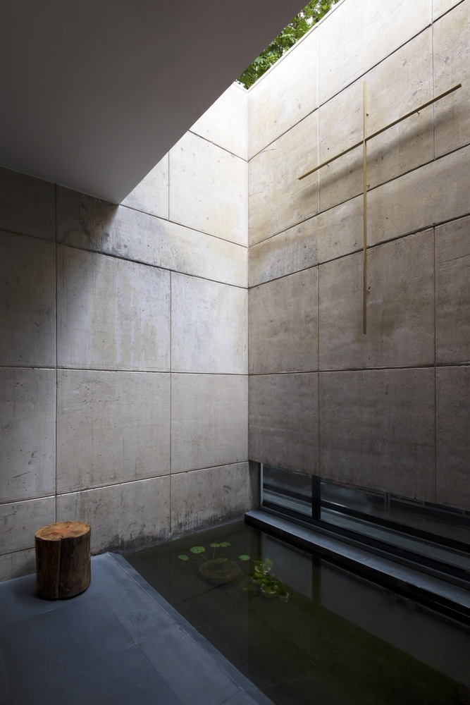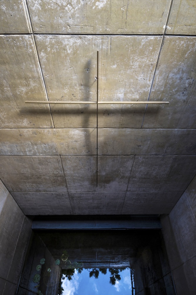 Ngôi nhà với sự kết hợp khiêm tốn của tính đơn giản về hình học, bức tường bê tông trần, thánh giá bằng đồng, sự tĩnh lặng của nước, chuyển động của bầu trời mang đến một ý tưởng về sự kết nối sâu sắc với thiên nhiên và niềm tin tôn giáo của gia đình. Sự tinh khiết trong không gian làm tăng cường môi trường xung quanh, khiến tâm hồn ta hướng tới trạng thái tâm trí thiền định.