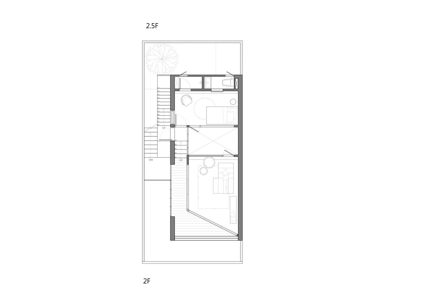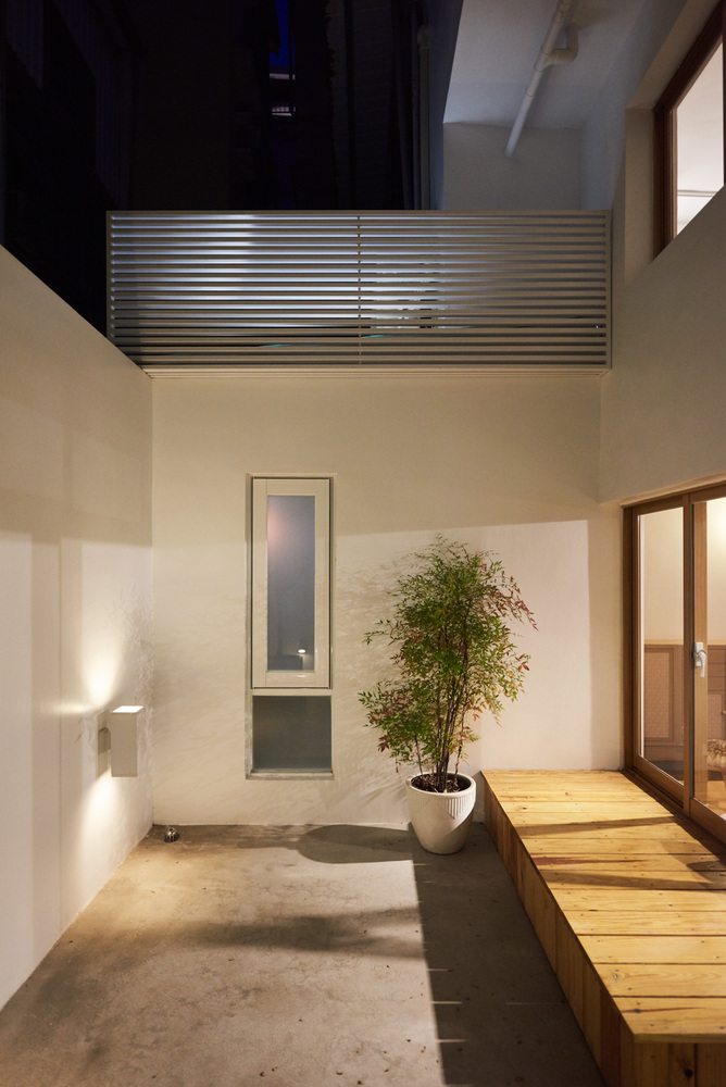Không gian ban đầu được chỉ định là một phòng thu và không gian triển lãm cho đồ nội thất Nhật Bản, nhưng do sơ đồ tầng, ba phòng của tòa nhà được ngăn cách bởi các bức tường vững chắc và bị chặn bởi cầu thang. Toàn bộ không gian bị phân mảnh và không mạch lạc. Vì vậy, họ loại bỏ các bức tường ngăn cách các tầng so le và di chuyển cầu thang ra bên ngoài để mở rộng không gian bên trong của cấu trúc để ánh sáng từ sân có thể đi vào.