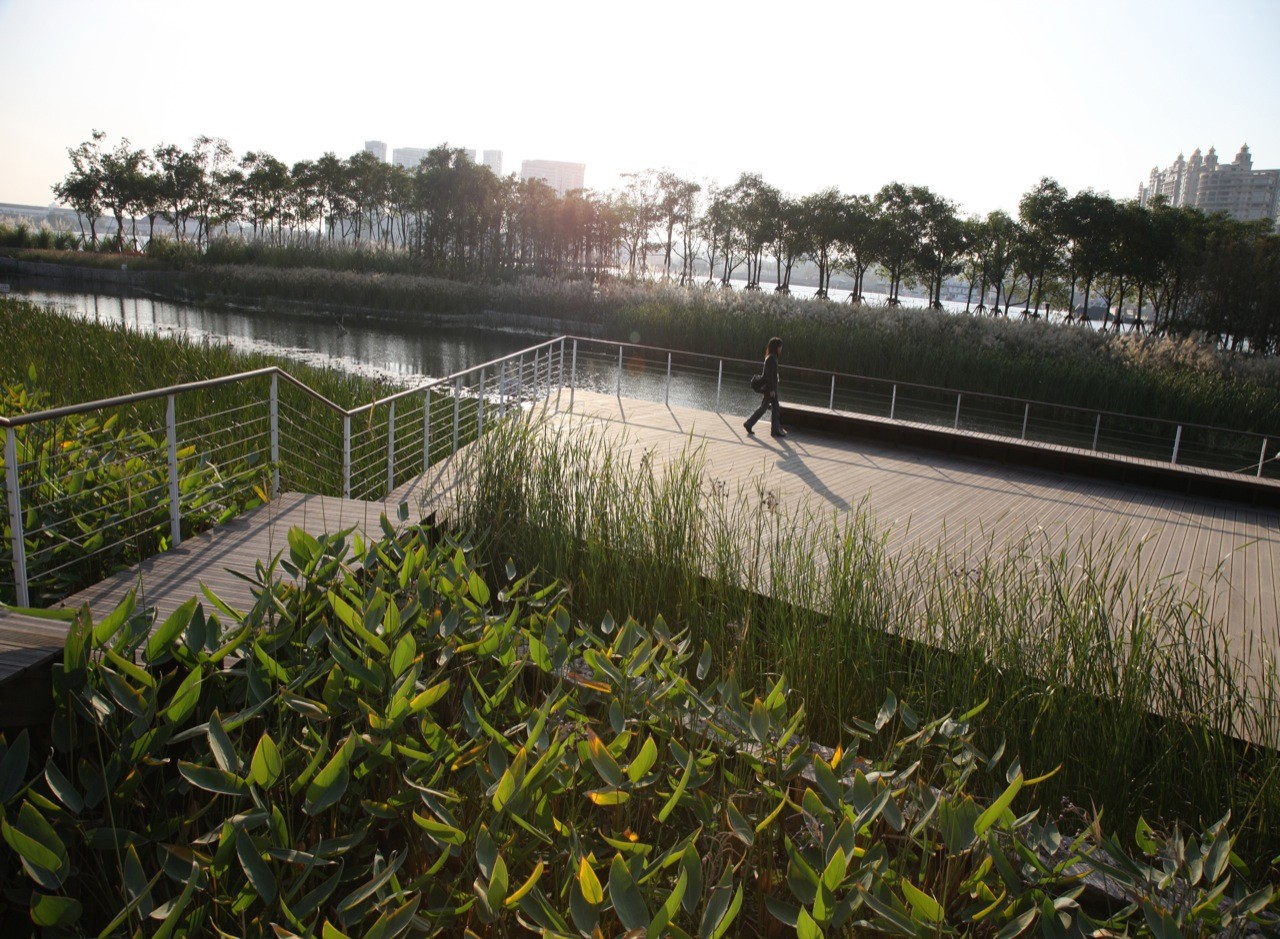 Được xây dựng trên một khu đất hoang của một khu công nghiệp trước đây, Công viên Houtan là một công trình tái tạo lại cảnh quan sống trên bờ sông Hoàng Phố của Thượng Hải. Khu vực ngập nước được xây dựng lại, hệ thống kiểm soát lụt được nâng cấp, các công trình và vật liệu công nghiệp được khai hoang, và tăng cường nông nghiệp trong đô thị là những yếu tố chiến lược trong thiết kế phục hồi tổng thể nhằm xử lý nước sông ô nhiễm và khôi phục bờ sông theo một cách thẩm mỹ hơn.