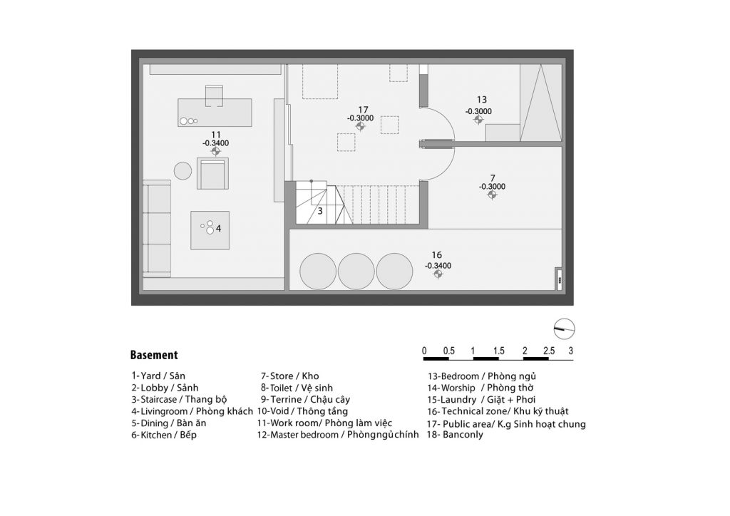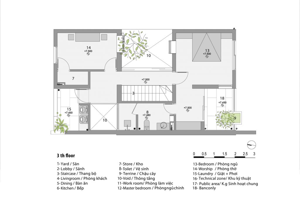 Khoảng trống thứ hai được tạo ra nhằm mục đích đối lưu, thông gió cho toàn bộ ngôi nhà cũng như cung cấp ánh sáng tự nhiên cho hệ thống nhà vệ sinh.
