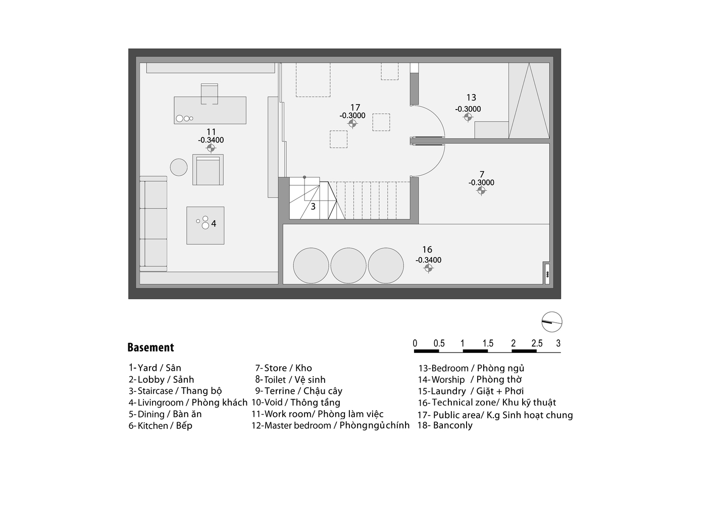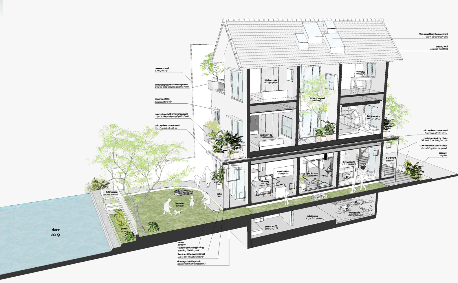 Khoảng trống thứ hai được tạo ra nhằm mục đích đối lưu, thông gió cho toàn bộ ngôi nhà cũng như cung cấp ánh sáng tự nhiên cho hệ thống nhà vệ sinh.