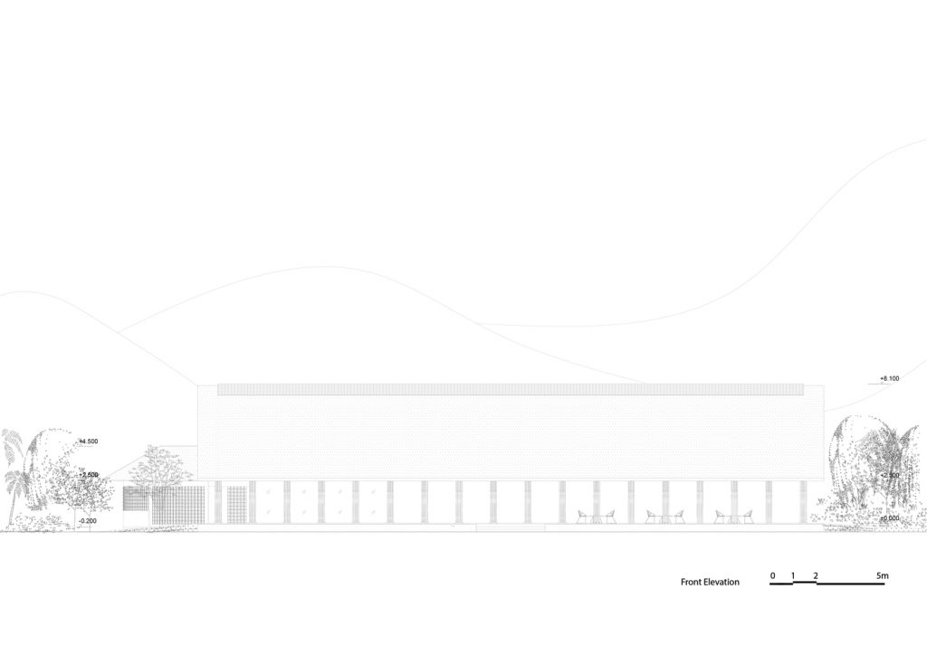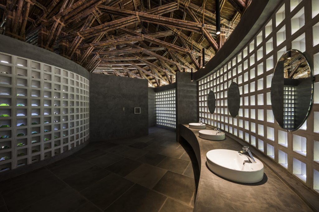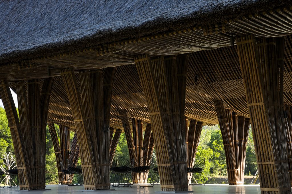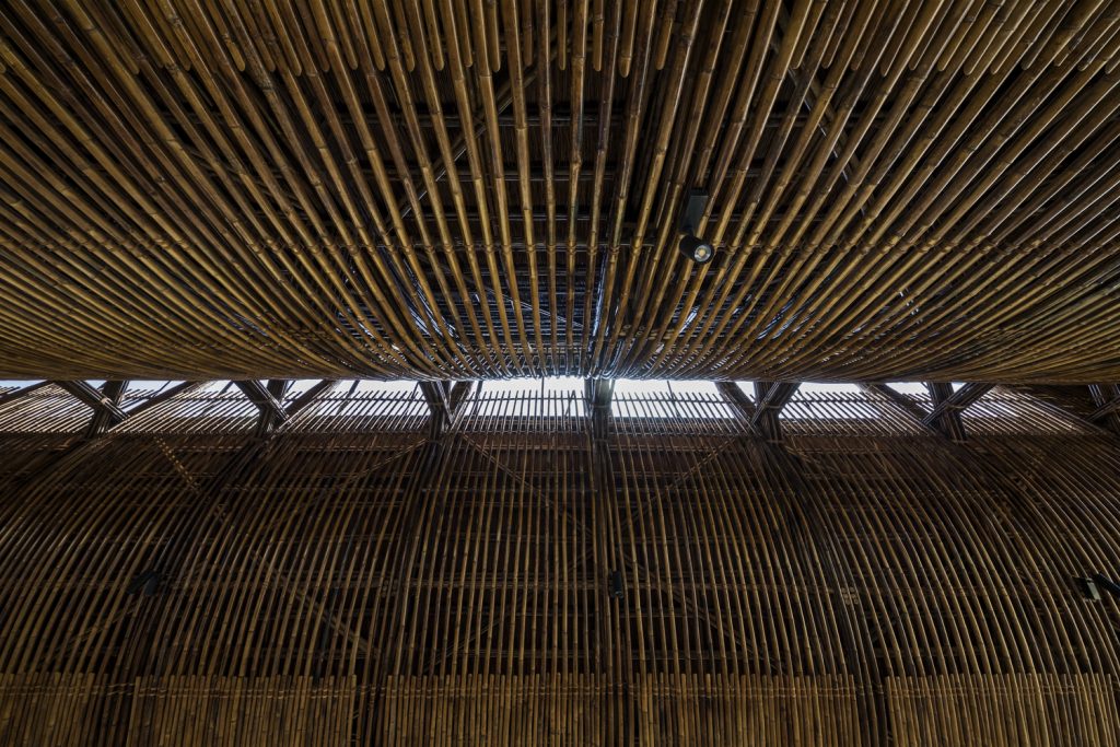 KTS chọn các vật liệu địa phương tự nhiên và giá cả phải chăng như tre, nứa, tranh và gạch đục lỗ cho phép luồng không khí và ánh sáng đi vào bên trong. Vào ban ngày, tòa nhà không cần phụ thuộc vào điều hòa không khí hoặc ánh sáng nhân tạo.