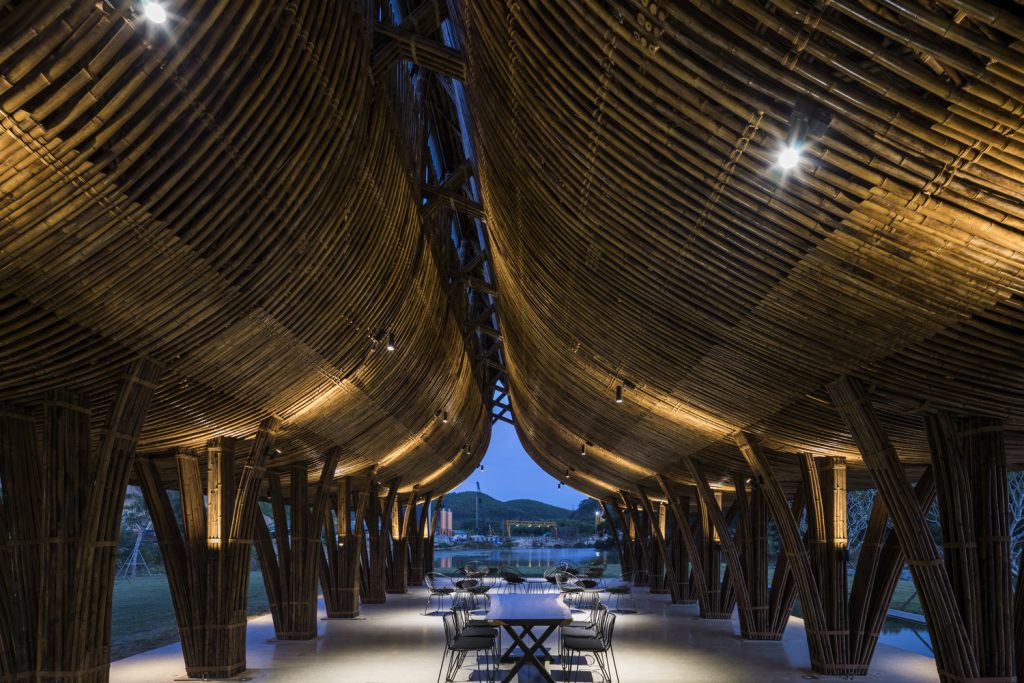 Hương An Viên Visiting Center – nằm trong một khung cảnh thiên nhiên thanh bình của khu công viên nghĩa trang cách Huế khoảng 10 km về phía Tây Nam, là một công trình kiến trúc hoàn toàn bằng tre, thiết kế của nhóm KTS Võ Trọng Nghĩa.
