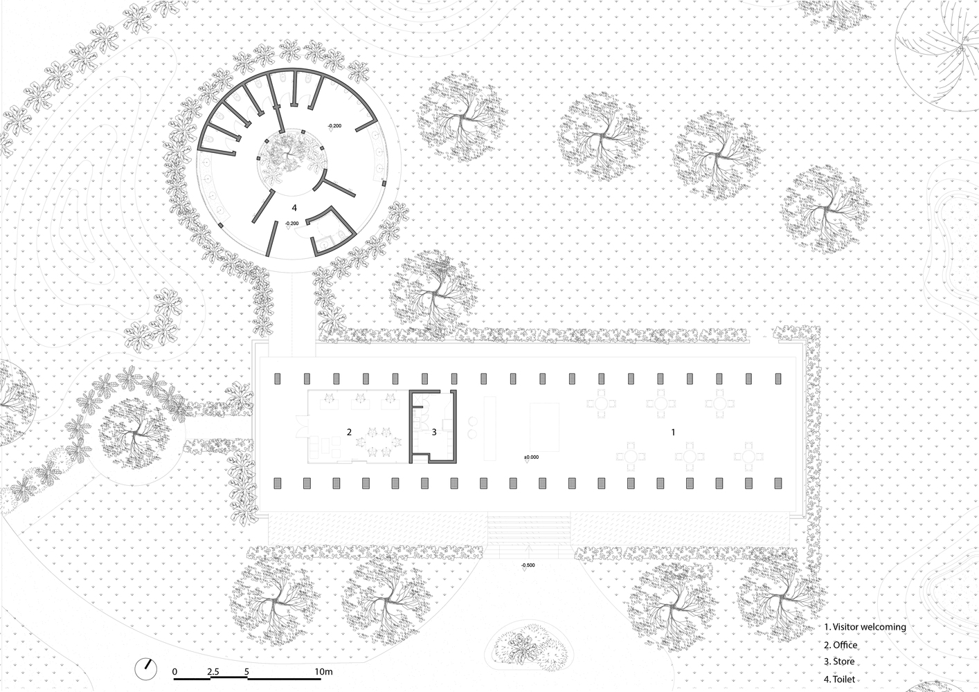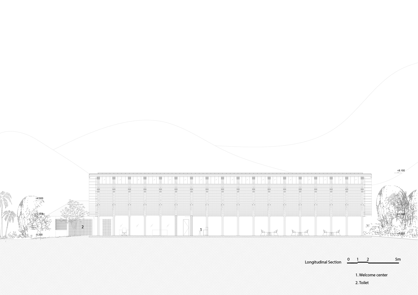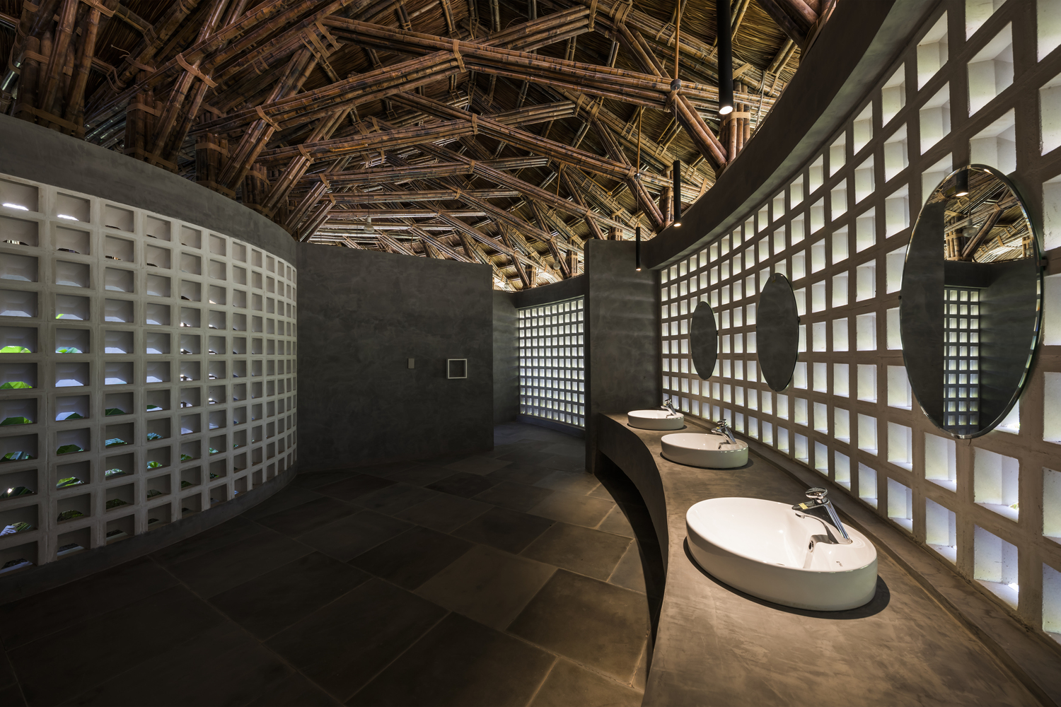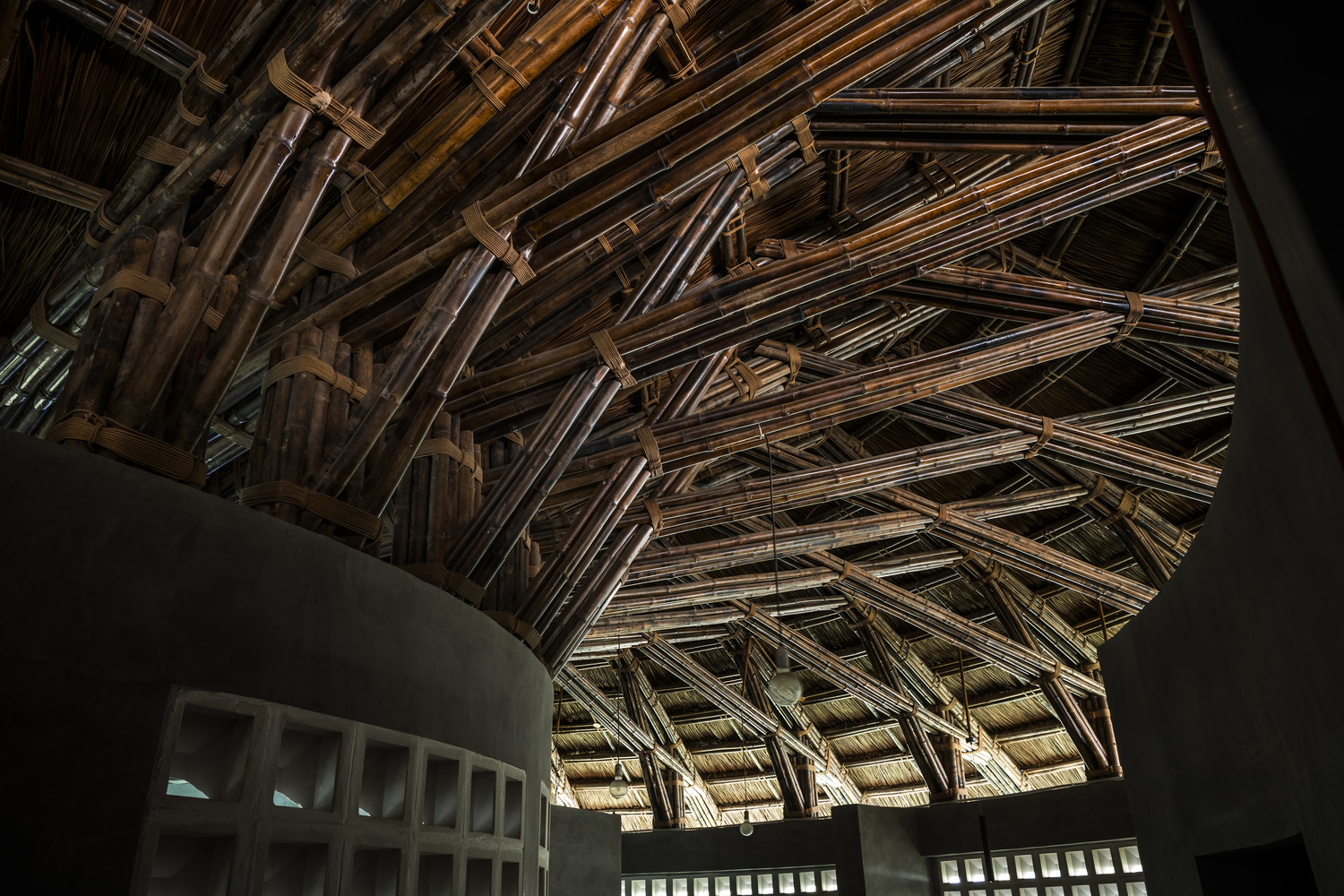 KTS chọn các vật liệu địa phương tự nhiên và giá cả phải chăng như tre, nứa, tranh và gạch đục lỗ cho phép luồng không khí và ánh sáng đi vào bên trong. Vào ban ngày, tòa nhà không cần phụ thuộc vào điều hòa không khí hoặc ánh sáng nhân tạo.