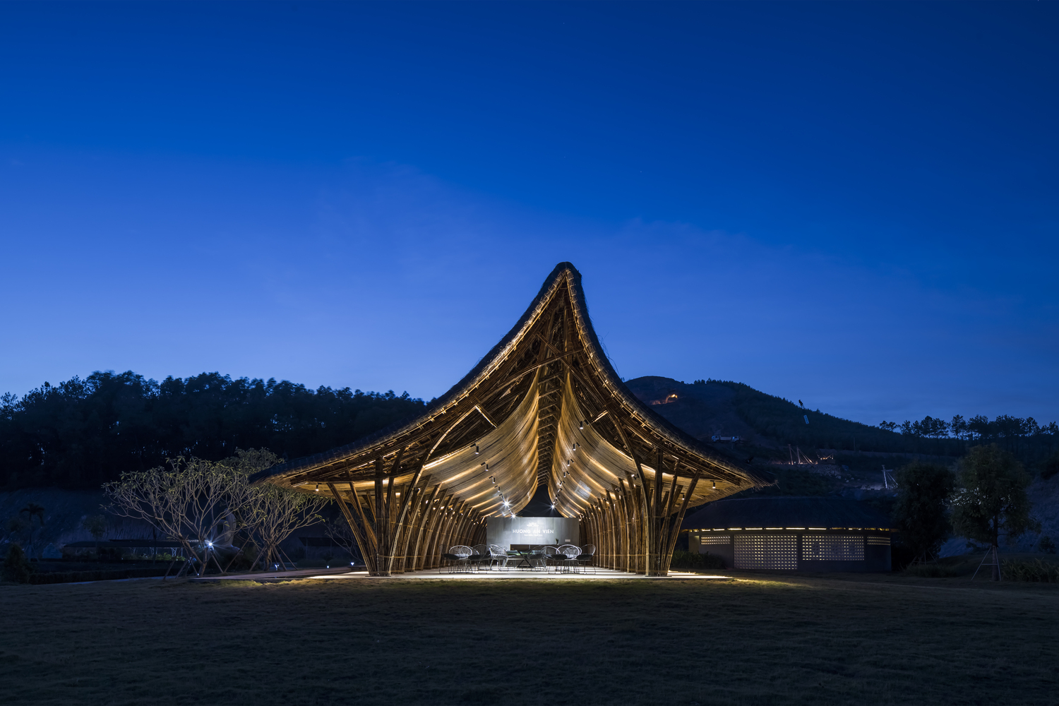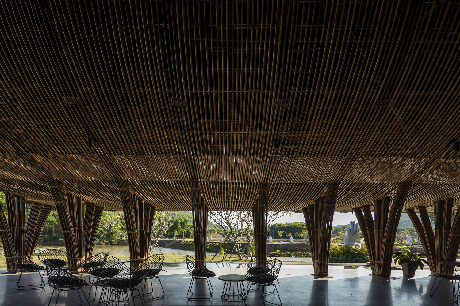 Hương An Viên Visiting Center – nằm trong một khung cảnh thiên nhiên thanh bình của khu công viên nghĩa trang cách Huế khoảng 10 km về phía Tây Nam, là một công trình kiến trúc hoàn toàn bằng tre, thiết kế của nhóm KTS Võ Trọng Nghĩa.
