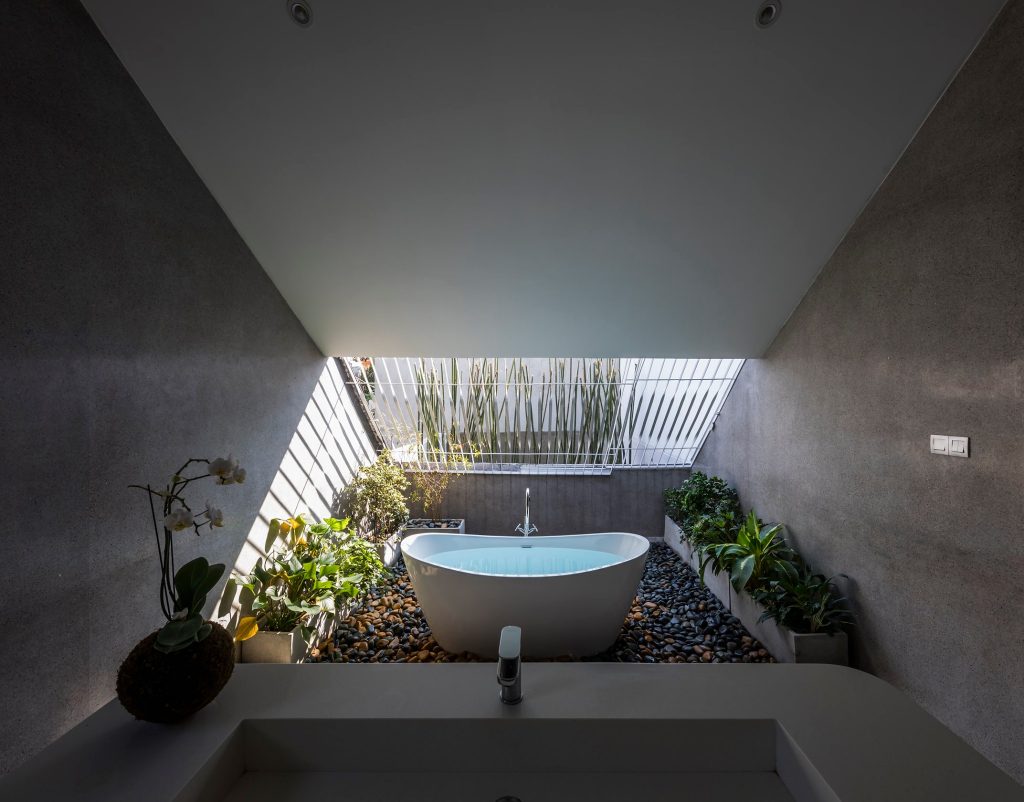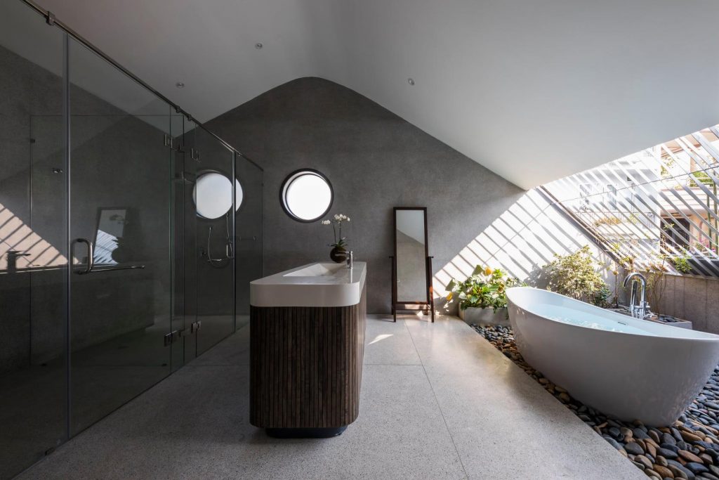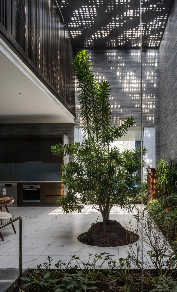 Công trình với diện tích 418m2 tọa lạc trong khu dân cư lâu đời của quận Bình Thạnh, Sài Gòn. Nhiệm vụ thiết kế được đặt ra là một công trình dành cho gia đình 4 thế hệ với 7 thành viên. Với sự khác biệt về tư duy các thế hệ, yêu cầu được đặt ra là thiết lập một không gian sống vừa đáp ứng được nhu cầu và tính cách từng thành viên, nhưng vẫn hình thành được mối liên hệ với nhau và chan hoà với thiên nhiên.