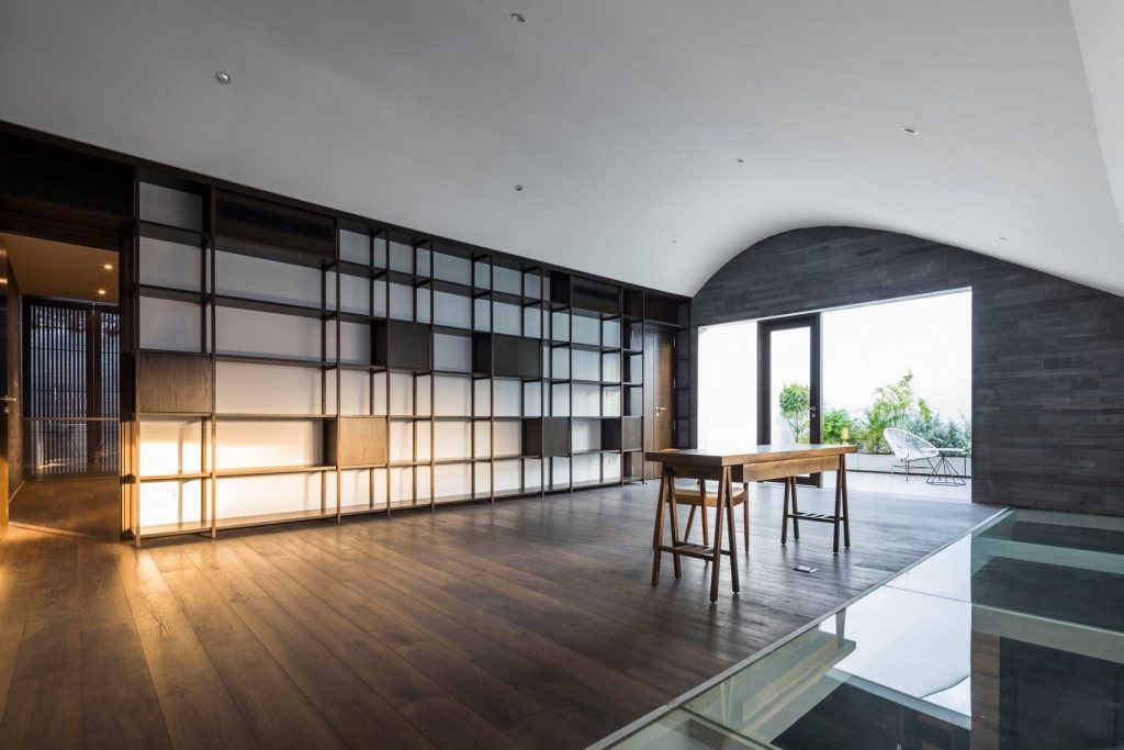 Một mái hiên dài mang đến cho công trình một vùng không khí dễ chịu và gợi nhớ tới những căn nhà truyền thống. Điều này tạo được sự kết nối thế hệ, sự hoà nhập giữa sự đương đại của người trẻ và sự hoài niệm của người lớn tuổi.