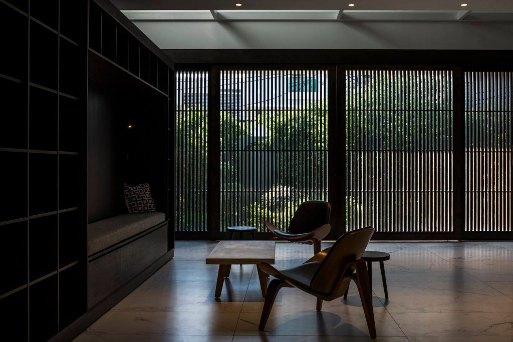 Thiên nhiên được bao quanh và đan xen vào các khối chức năng tạo ra sự xoá nhoà ranh giới giữa trong và ngoài, nhưng vẫn bảo đảm được sự riêng tư cho việc nghỉ ngơi.