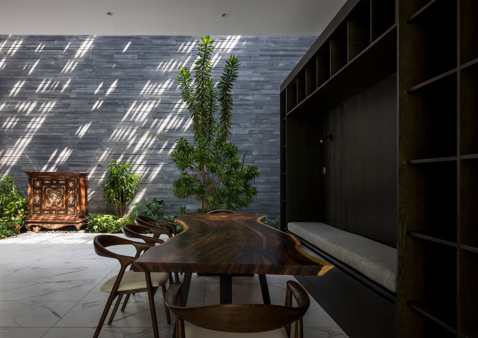 Công trình với diện tích 418m2 tọa lạc trong khu dân cư lâu đời của quận Bình Thạnh, Sài Gòn. Nhiệm vụ thiết kế được đặt ra là một công trình dành cho gia đình 4 thế hệ với 7 thành viên. Với sự khác biệt về tư duy các thế hệ, yêu cầu được đặt ra là thiết lập một không gian sống vừa đáp ứng được nhu cầu và tính cách từng thành viên, nhưng vẫn hình thành được mối liên hệ với nhau và chan hoà với thiên nhiên.