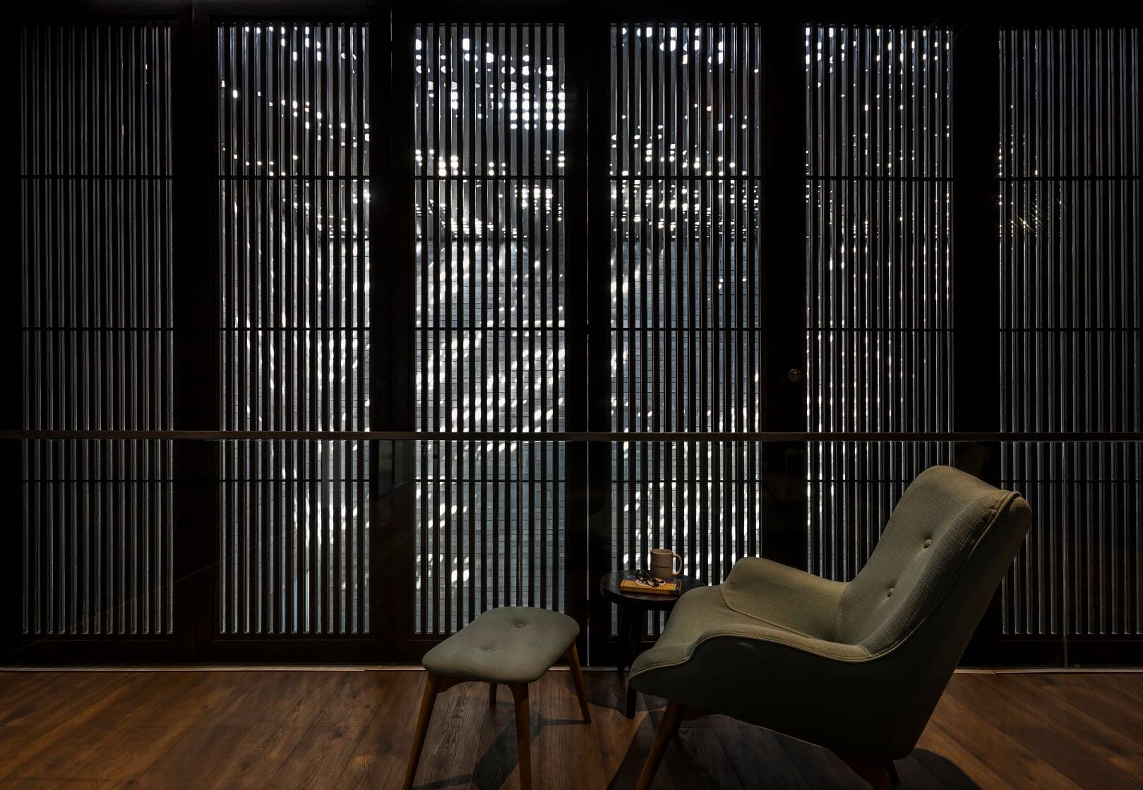 Thiên nhiên được bao quanh và đan xen vào các khối chức năng tạo ra sự xoá nhoà ranh giới giữa trong và ngoài, nhưng vẫn bảo đảm được sự riêng tư cho việc nghỉ ngơi.