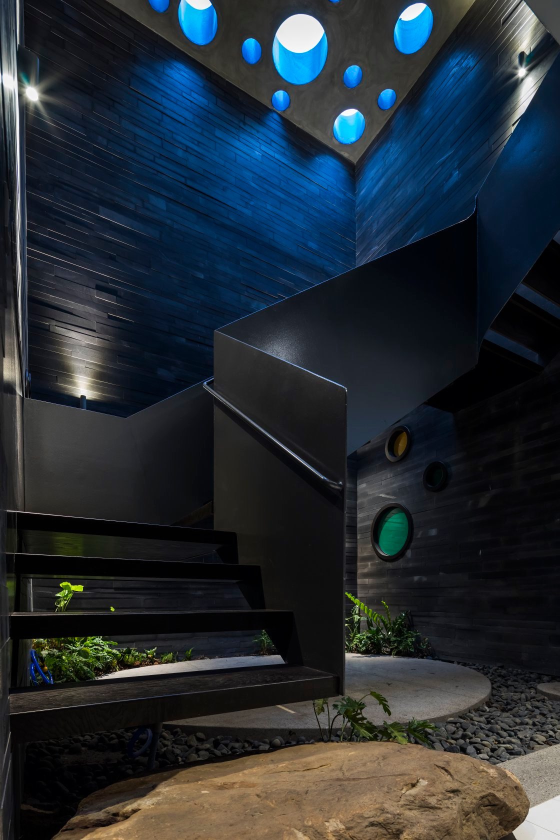 Về hình thức, công trình hướng tới việc giảm tính trang trí, các không gian được sử dụng vật liệu và ánh sáng tự nhiên cùng với cây xanh tạo nên những trải nghiệm thú vị.