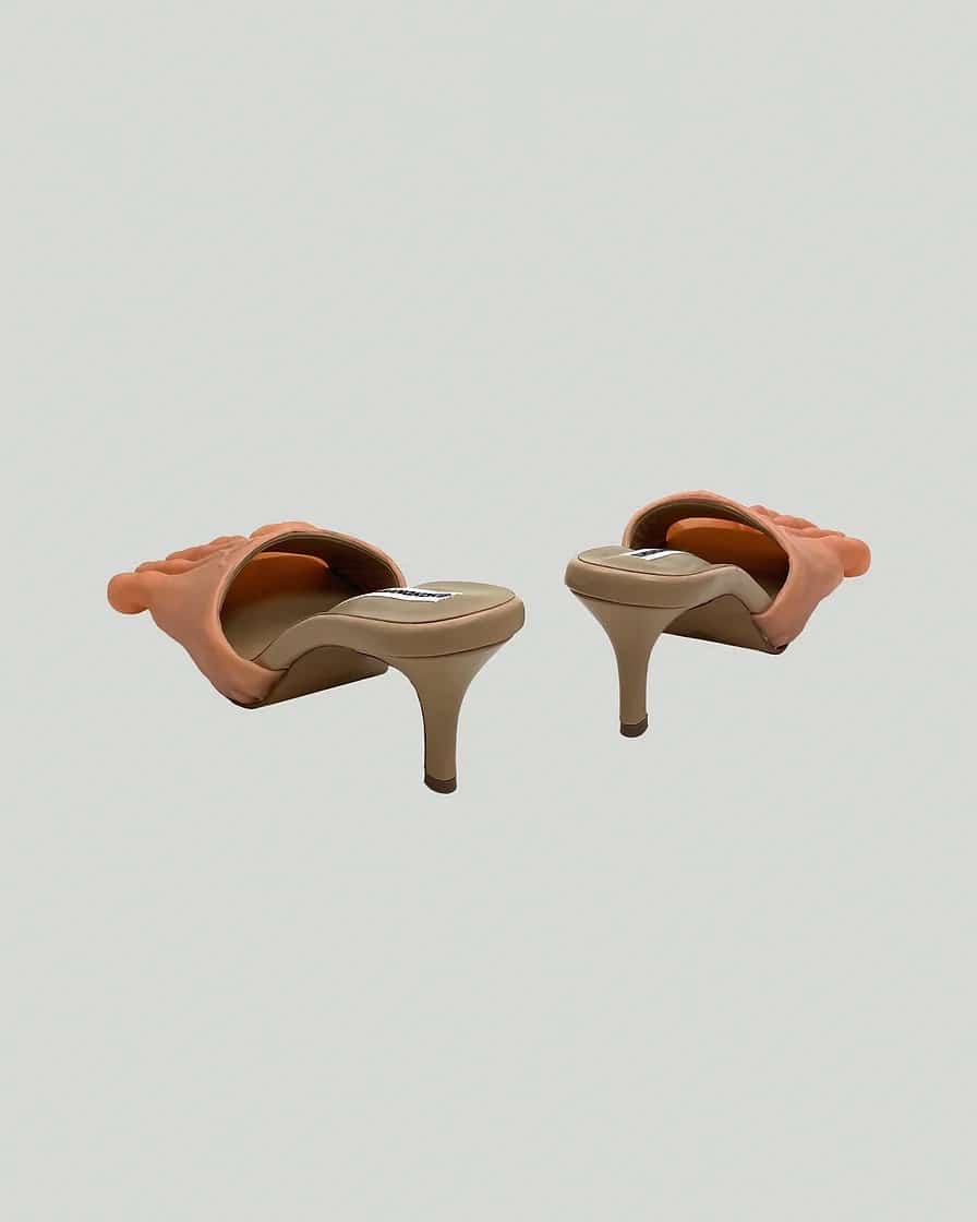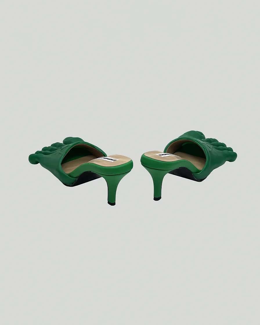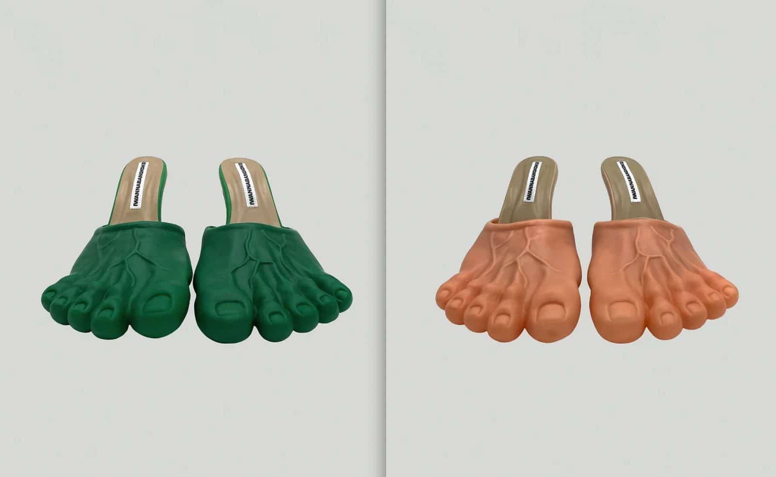 Được đặt tên là Hulkfoot và Bigfoot, cặp giày gót cao unisex này được làm thủ công từ da với các đường gân chạy dọc khắp đôi chân khổng lồ.