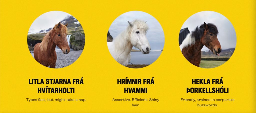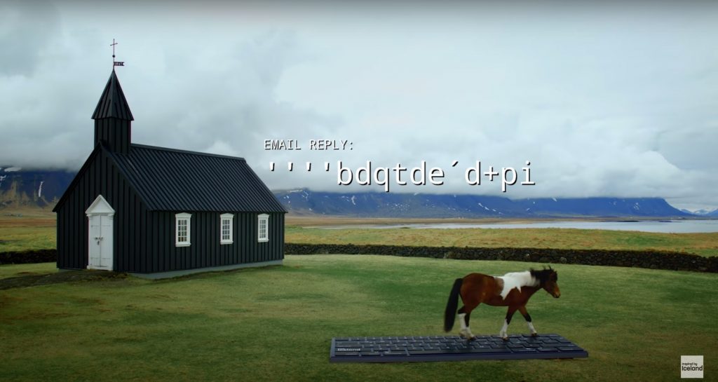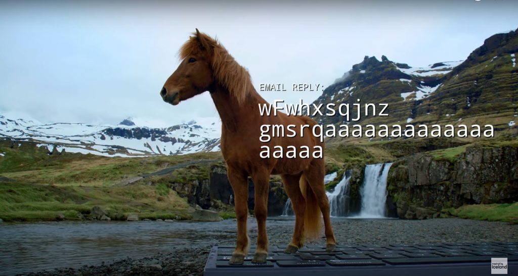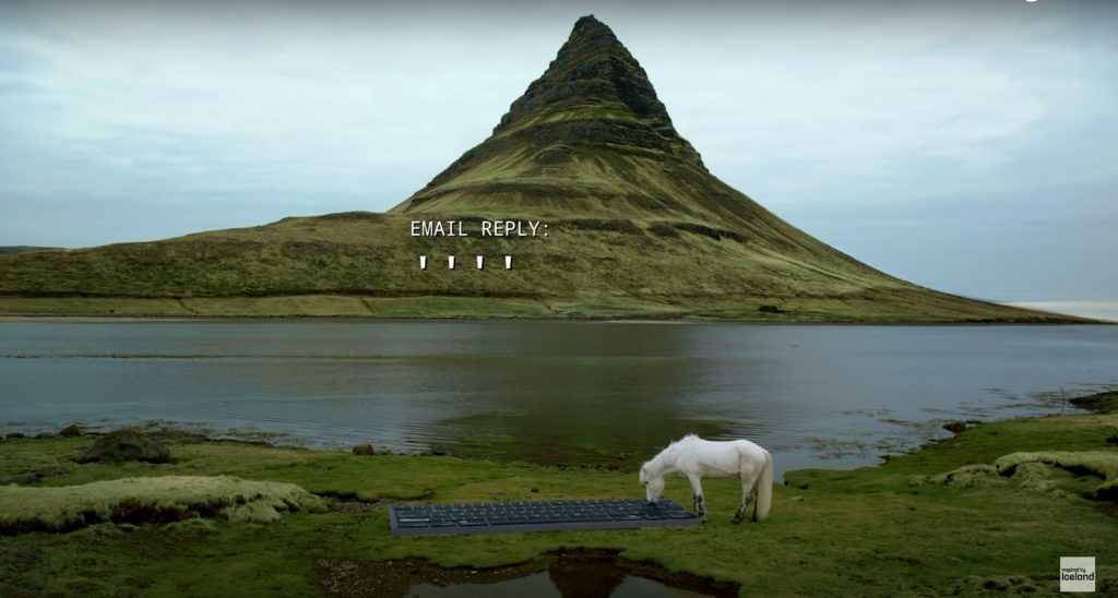 Có tên là ‘OutHorse Your Email’ (một cách chơi chữ khéo léo của từ outsource), chiến dịch quảng bá mới nhất của Visit Iceland đã “tuyển dụng” 3 chú ngựa được huấn luyện đặc biệt để thay mặt du khách trả lời email công việc cho họ.