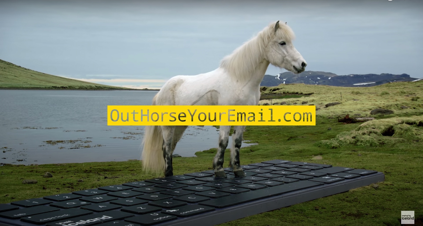 Có tên là ‘OutHorse Your Email’ (một cách chơi chữ khéo léo của từ outsource), chiến dịch quảng bá mới nhất của Visit Iceland đã “tuyển dụng” 3 chú ngựa được huấn luyện đặc biệt để thay mặt du khách trả lời email công việc cho họ.