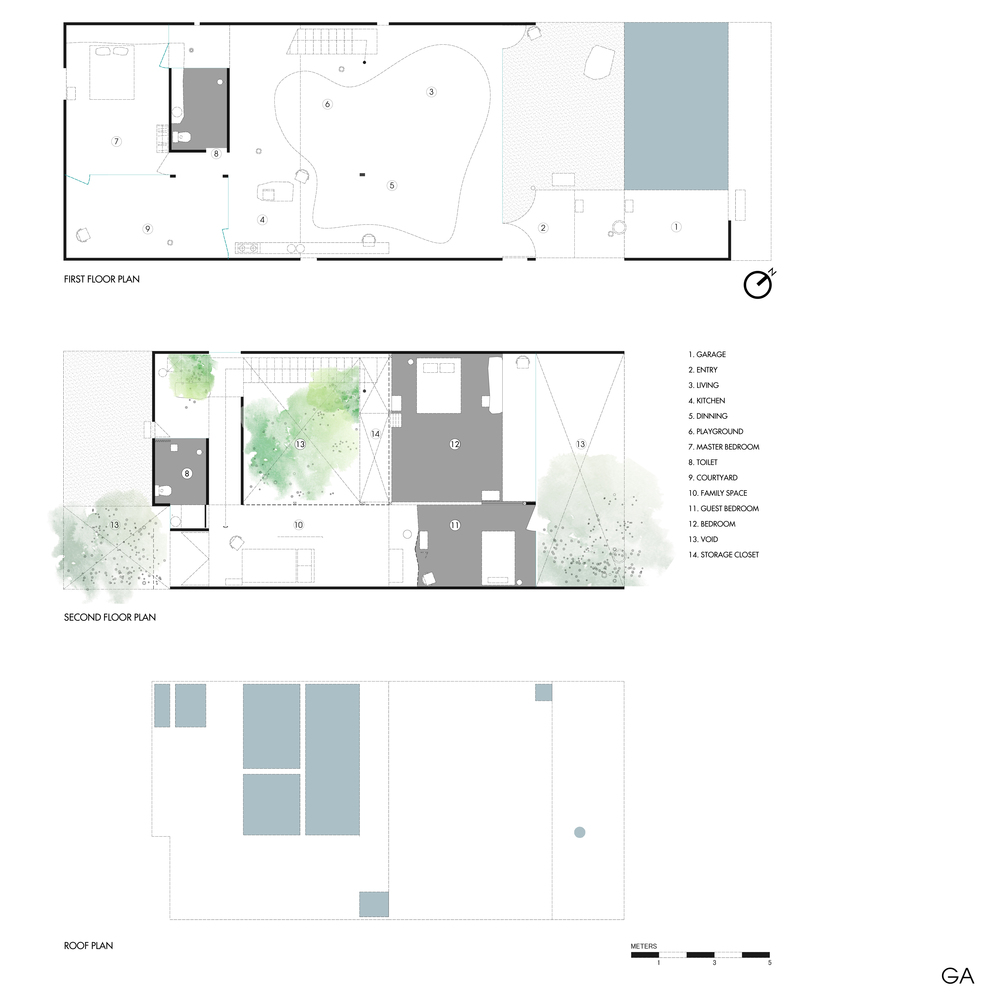 Các khoảng trống lớn nhỏ được tạo ra từ lớp vỏ và lớp lõi được sử dụng linh hoạt trong các giai đoạn khác nhau. Khả năng mở, đóng và lấp đầy cho phép mở rộng không gian sống trong tương lai, đồng thời giải quyết các vấn đề vi khí hậu trong không gian sống, kết nối với môi trường tự nhiên thông qua cây xanh, ánh sáng và lưu thông không khí, v.v.