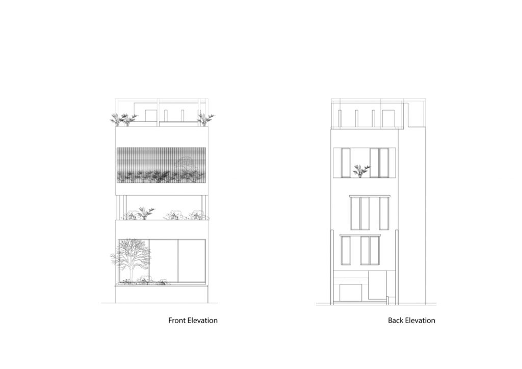Giống như bao ngôi nhà ống khác ở Việt Nam, diện tích đất chật hẹp được bù đắp bởi tham vọng hướng trời. Để nội thất không bị cảm giác chật chội và dồn nén, các kiến trúc sư đã tìm đến kiến trúc Edo, phong trào De Stijl và chủ nghĩa hiện đại Việt Nam.