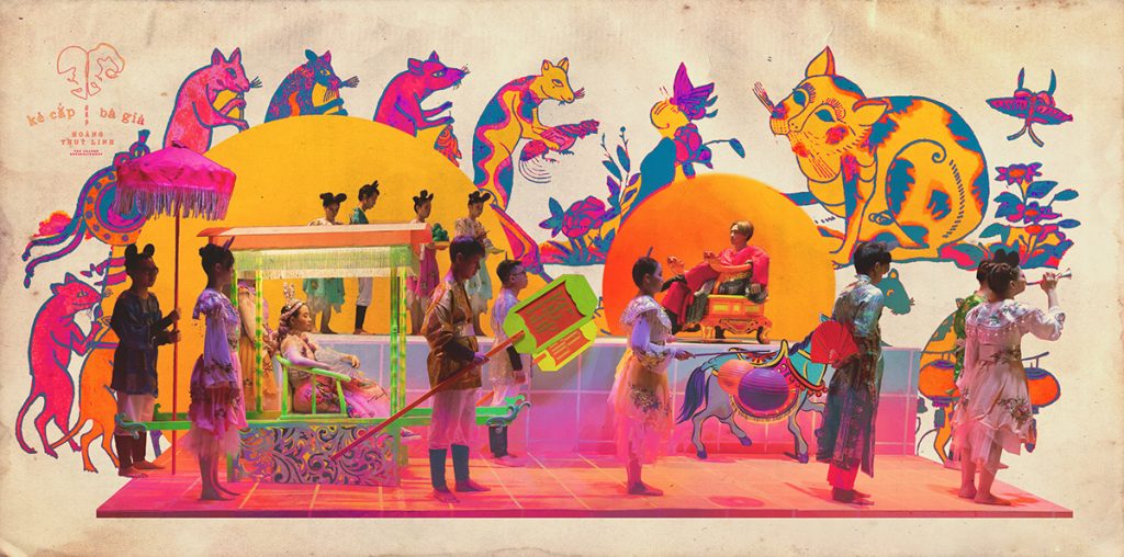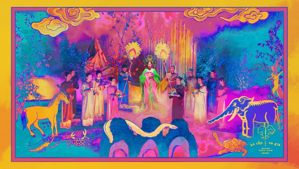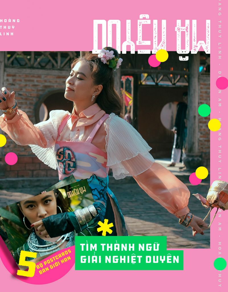 Trên thực tế, từng ca khúc trong album cũng đều có những câu chuyện riêng, đó cũng là điểm lợi cho mình trong việc sáng tạo. Nhiệm vụ của mình là vận dụng hết khả năng sáng tạo để có thể nhào nặn hình ảnh cho từng single mỗi lần ra mắt, làm sao vẫn giữ được cái cốt truyền thống của concept chung nhưng không bị trùng lặp. Với “Để Mị Nói Cho Mà Nghe”, mình đào sâu về vũ trụ văn học, phong cách thiết kế mang tinh thần của một cuốn sách giáo khoa độc đáo. Sang đến “Tứ Phủ” lại thật ma mị, huyền ảo dựa vào tín ngưỡng Thờ Mẫu. Duyên Âm thì đầy màu sắc của lễ hội dân gian, poster lấy cảm hứng như một lá số tử vi. Rồi thì MV gần nhất “Kẻ cắp gặp bà già” là một loạt hình ảnh như những bức tranh Hàng Trống xuất hiện lạ mắt.