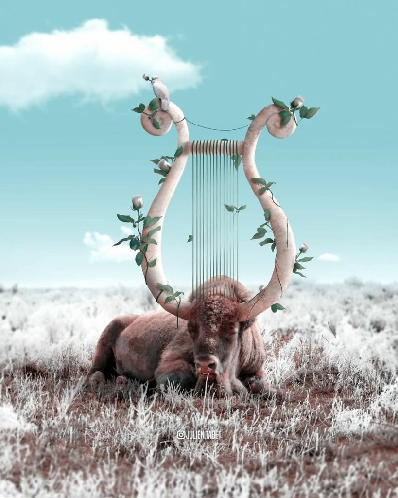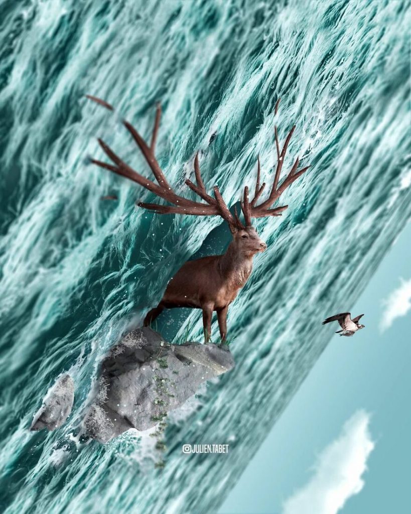 Tất cả các tác phẩm nghệ thuật của Julien đều được thực hiện bằng Photoshop, một trong những công cụ sáng tạo mạnh mẽ nhất của thế hệ chúng ta. Lấy cảm hứng từ những nghệ sĩ nổi tiếng với phong cách siêu thực như Magritte và Dali, Julien nghĩ rằng đó là cách tốt nhất để chia sẻ ý tưởng những ý tưởng và trí tưởng tượng có phần điên rồ của mình.